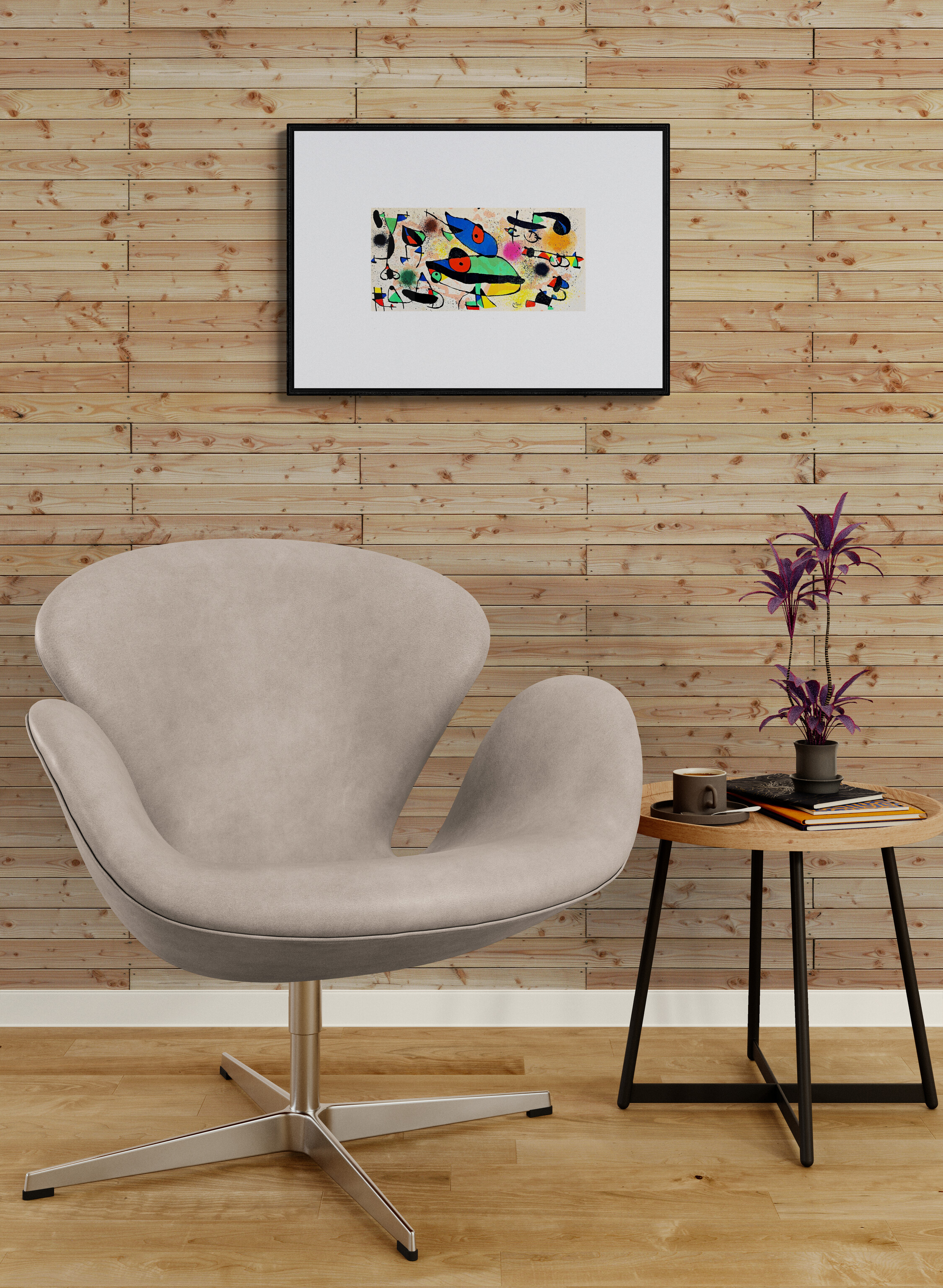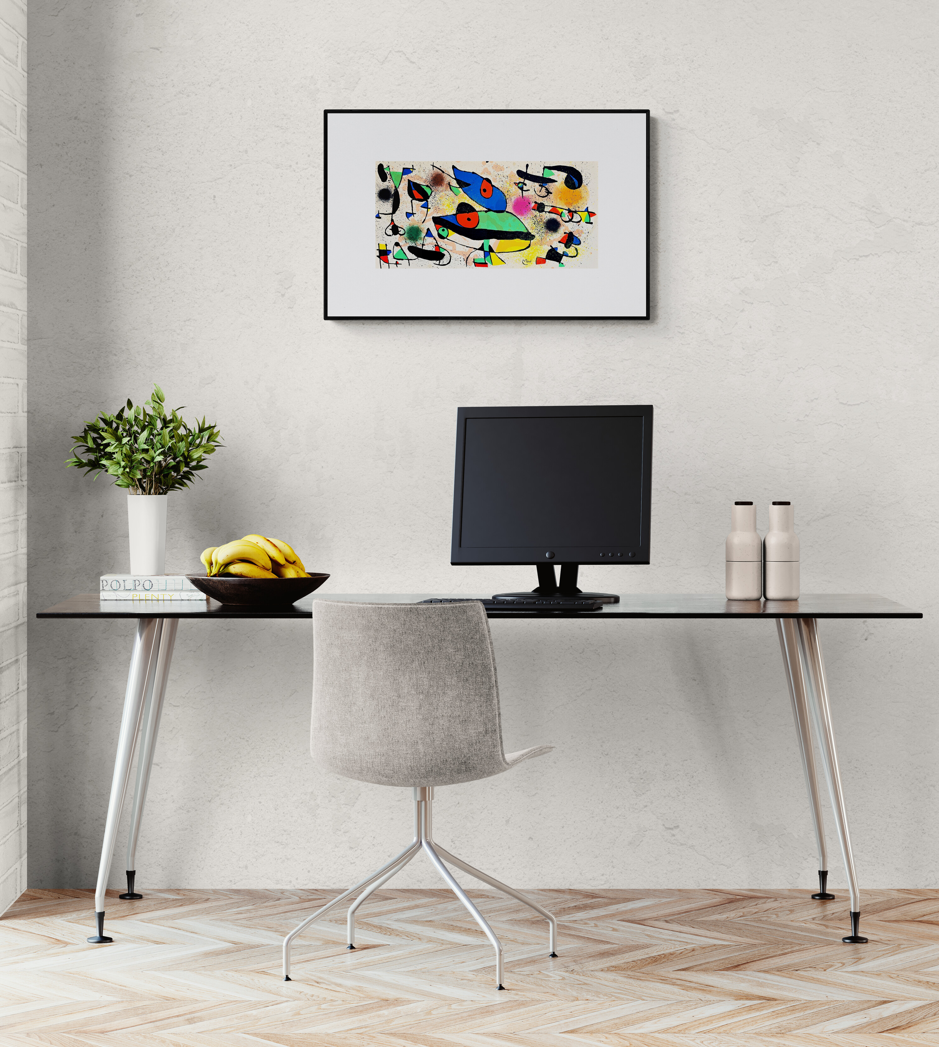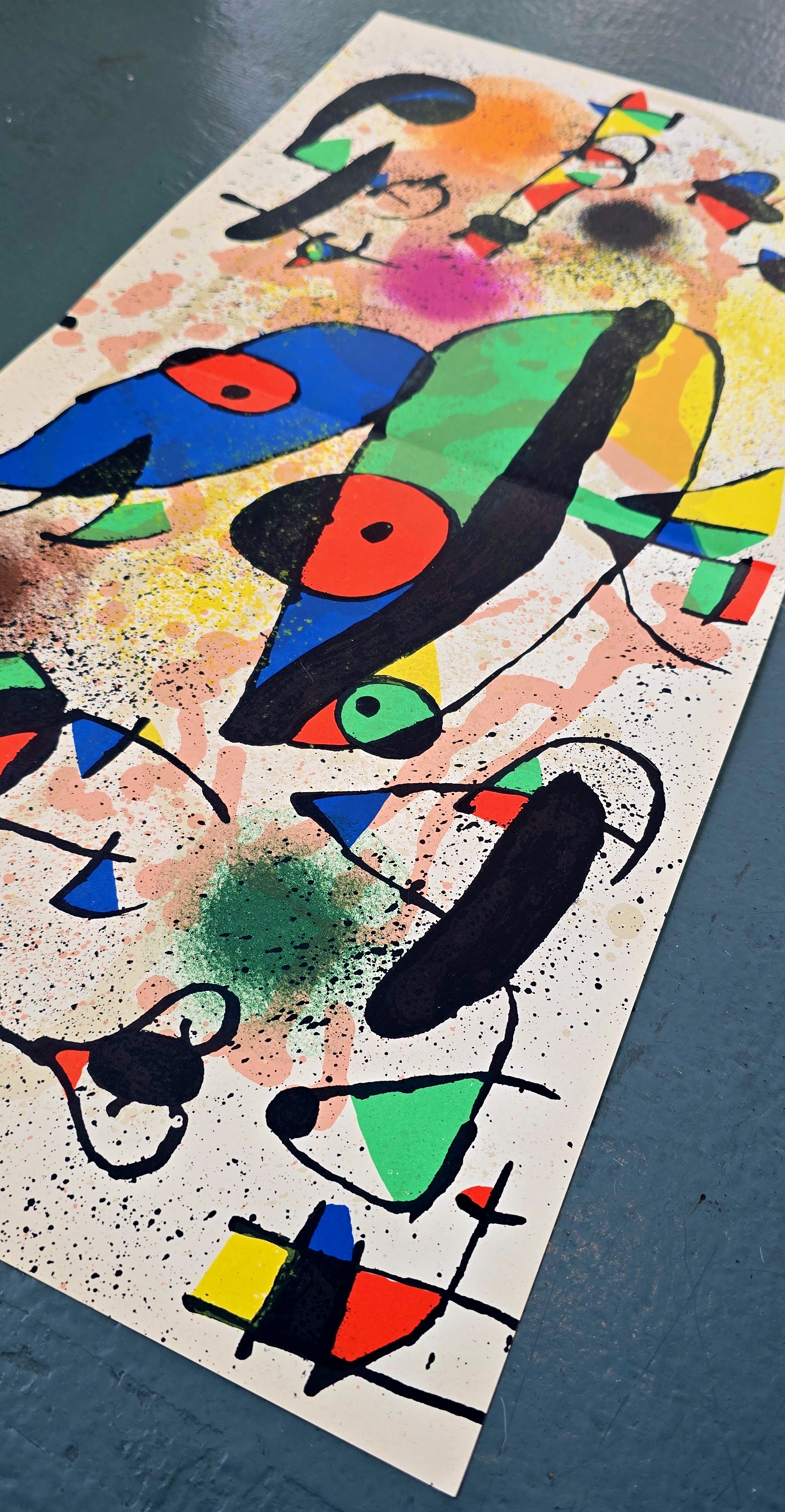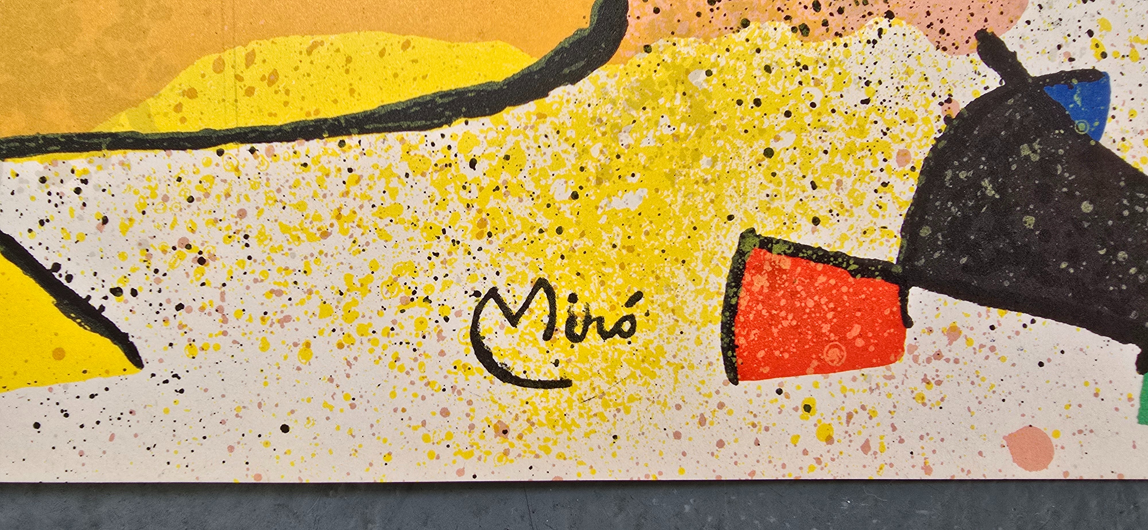 Joan Miro i Ferra (20 April 1893-25 December 1983) was a Catalan Spanish painter, sculptor, and ceramist. Miro initially went to business school as well as art school. He began working as a clerk when he was a teenager, although he abandoned the business world for art after suffering a nervous breakdown. His early work was influenced by van Gogh and Cezanne and was called his Catalan Fauvist period. Miro had his first solo show in Barcelona in 1917. In 1920, Miro made his first trip to Paris, where he met Pablo Picasso. From this time, Miro divided his time between Paris and Montroig, Spain. In Paris, he participated in Dada activities. The artist's first solo show in Paris was at the Galerie la Licorne in 1921. in 1924, Miro joined the Surrealist group. He visited the Netherlands in 1928 and began a series of paintings inspired by Dutch masters. That year he also made his first papiers colles and collages. In 1929 he began experimenting with lithography. His first etchings date from 1933. During the early 1930s he made Surrealist sculptures. In the 1930s onwards, Miro expressed contempt for conventional painting as a way of supporting bourgeois society, and declared an "assassination of painting" in favor of upsetting the elements of established painting. Because of the Spanish Civil War, Miro left Spain in 1936. Also in 1936, Miro was included in the exhibitions "Cubism and Abstract Art" and "Fantastic Art, Dada Surrealism" at the Museum of Modern Art. Miro's first major museum retrospective was held at MOMA in 1941. In 1944, Miro began working in ceramics and started to concentrate on printmaking. During the 1960s he began to work intensively in sculpture. Retrospectives of Miro's work were held at the Musee National d'Art Moderne, Paris, in 1962, and the Grand Palais, Paris, in 1974. In 1978, the Musee national d'Art Modern exhibited over five hundred works in a major retrospective of his drawings. Miro died on December 25, 1983, in Palma de Mallorca, Spain.