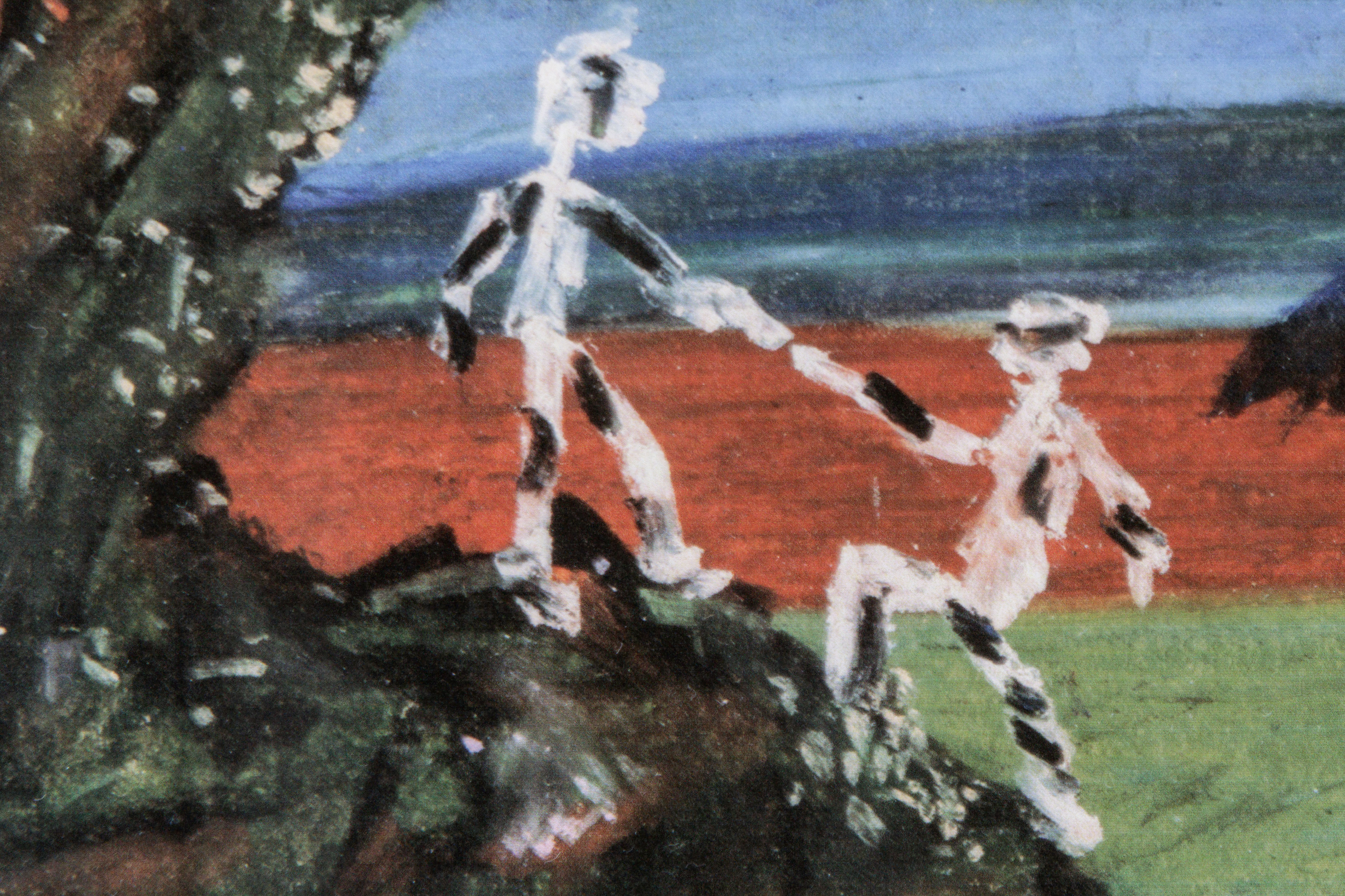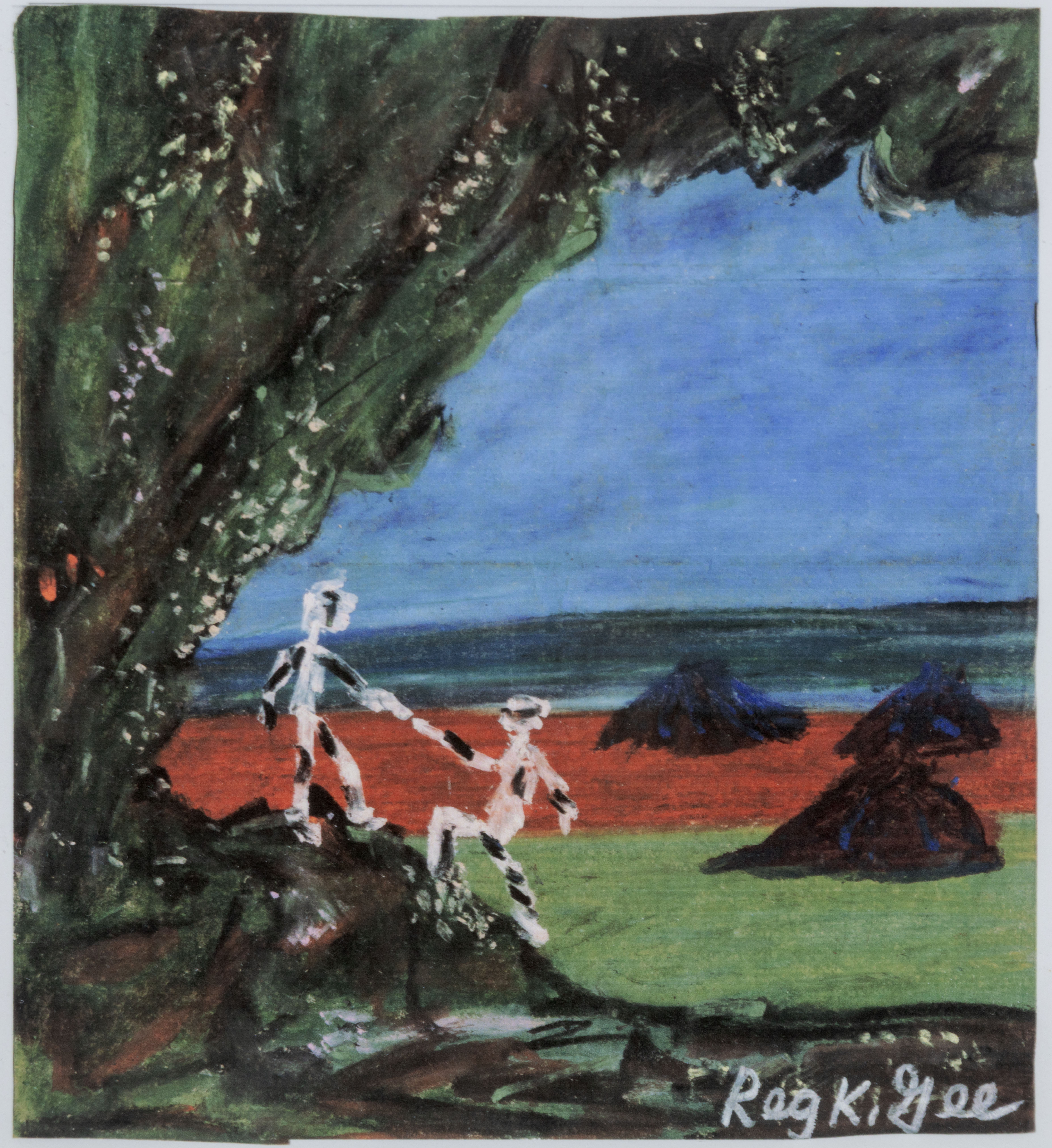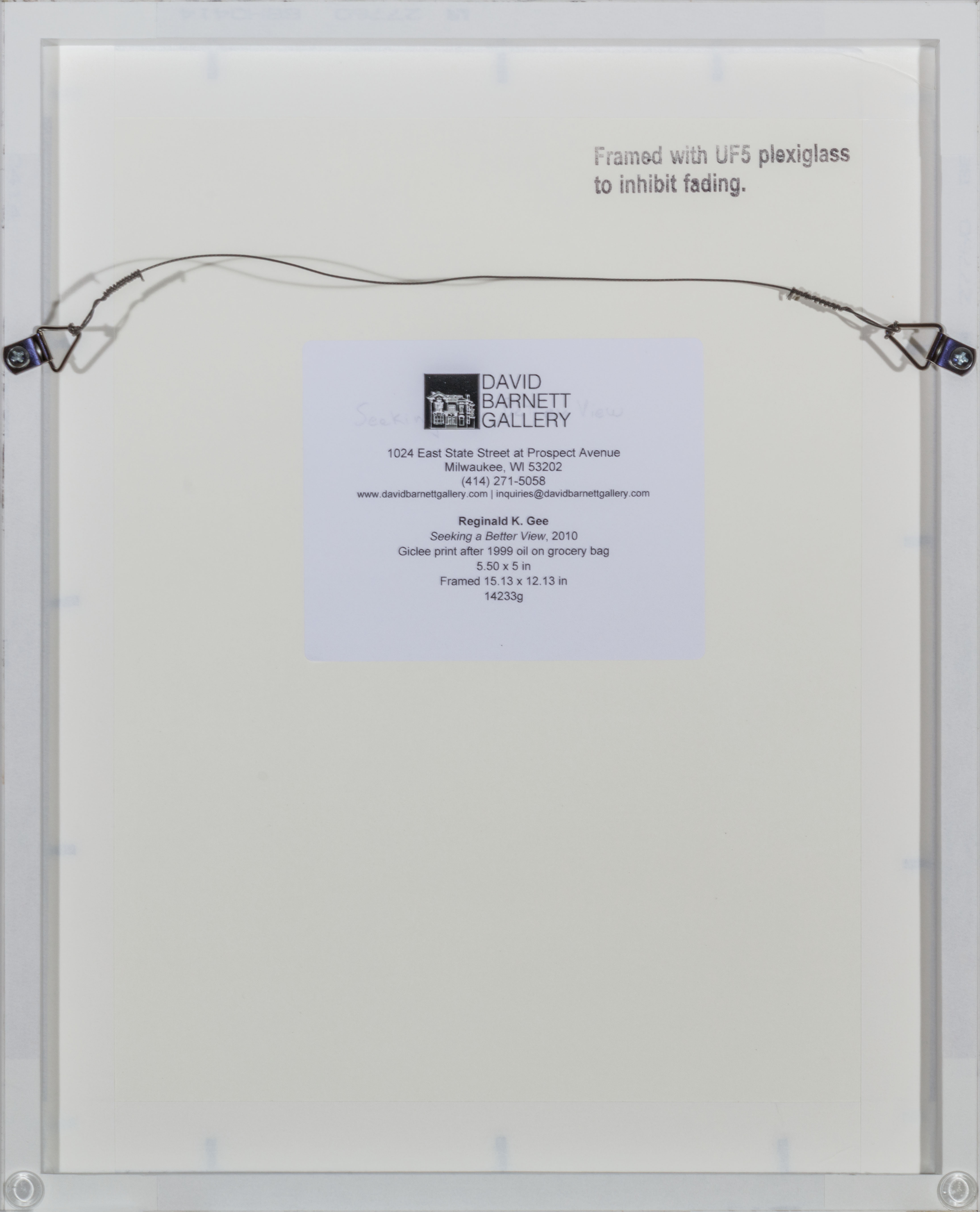 Milwaukee-based artist Reginald K. Gee is known for his visionary Neo-Expressionist style. Born in Milwaukee in 1964 to Native American and African American parents, he is an emerging tour de force in the contemporary and outsider art scenes. Gee’s interpretation of subject matter is unique, inventive and illustrates his command of expression in form, color and language. In his images, he explores a wide range of themes and subjects, including playful musicians, surreal vistas, mystical dreams and fantastic visions. He borrows from his heritage as an African American as well as a Native American, incorporating historical images, symbols, and numerology into his artwork. At the same time, Gee's paintings are figurative, abstract and narrative, expressing through the use of uninhibited color the artist's views of contemporary society. When asked how he learned about art Gee replied, "I didn't. I still haven't learned. You just do it." The Milwaukee Journal Sentinel described Gee's work as "tribal art-derived from Pop Culture and art magazines." In recent years, Gee has participated in dozens of shows including Soul of Black Folk and the Chicago Black Art Expo. Gee is influenced by Pablo Picasso, Willem De Kooning, Francis Bacon, Jean Michel Basquiat and David Salle.