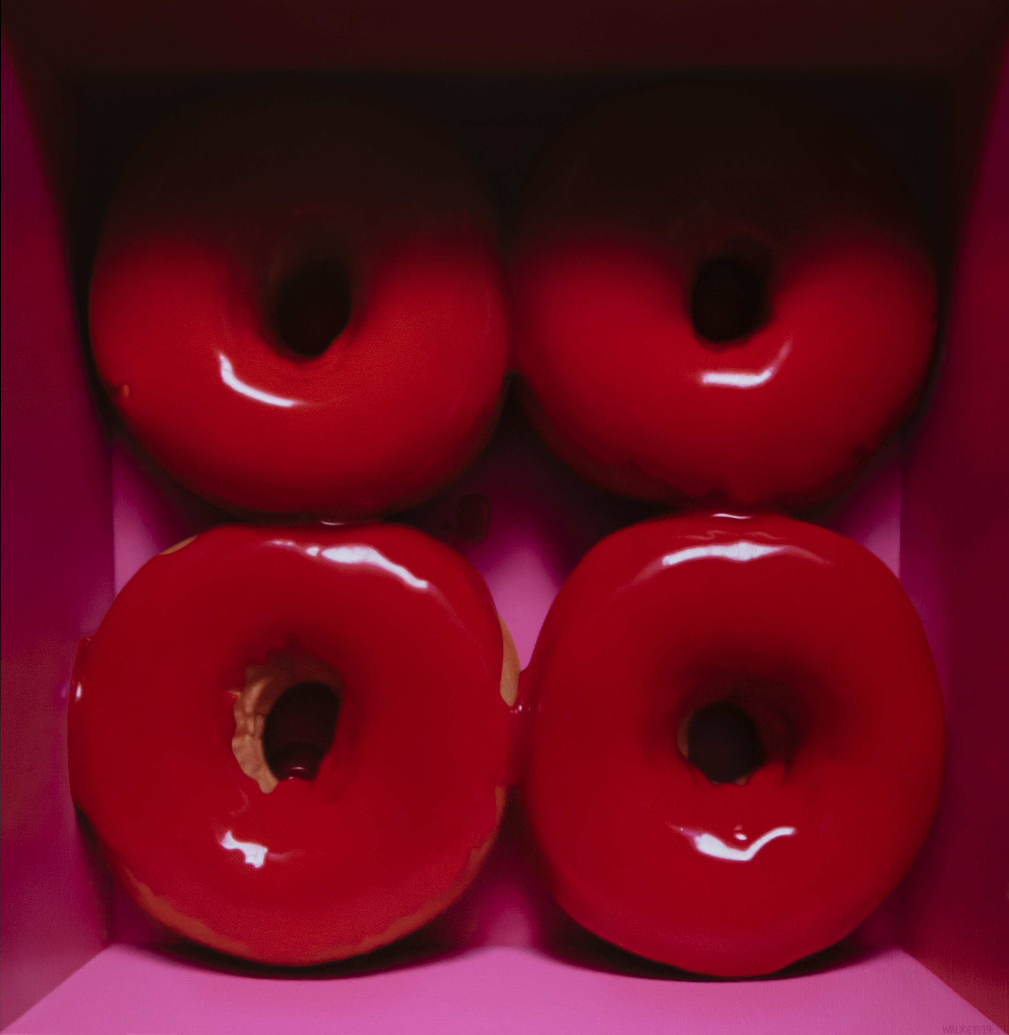 Jason Walker’s imagery reflects popular culture: from Disney’s Mary Poppins to frosted doughnuts. As an observer and conveyor of cultural icons, he is an anthropologist, and his beautiful and often endearing paintings resonate with art viewers. But this Toronto based artist is also an analyst. Conceived with the clear-eyed vision of a native of Nairn, Scotland, Walker’s compositions challenge viewers to consider contemporary culture. Through his iconography, Walker creates artifacts, a paint-on-canvas time capsule for future generations. Walker’s art remains within post-modernism and, although representational, is also conceptual. Through live-action figures and figurines, Walker also conveys the universality of emotions: the romantic, the tragic, and the comic. Yet his humor is playful and often subtle. Frosted doughnuts evoke the realism of the 17th-century Belgian nature morte or still-life tradition. A special-effects animator for the Oscar-nominated Madame Tutli-Putli, Walker employs humor to bring social concepts to life.