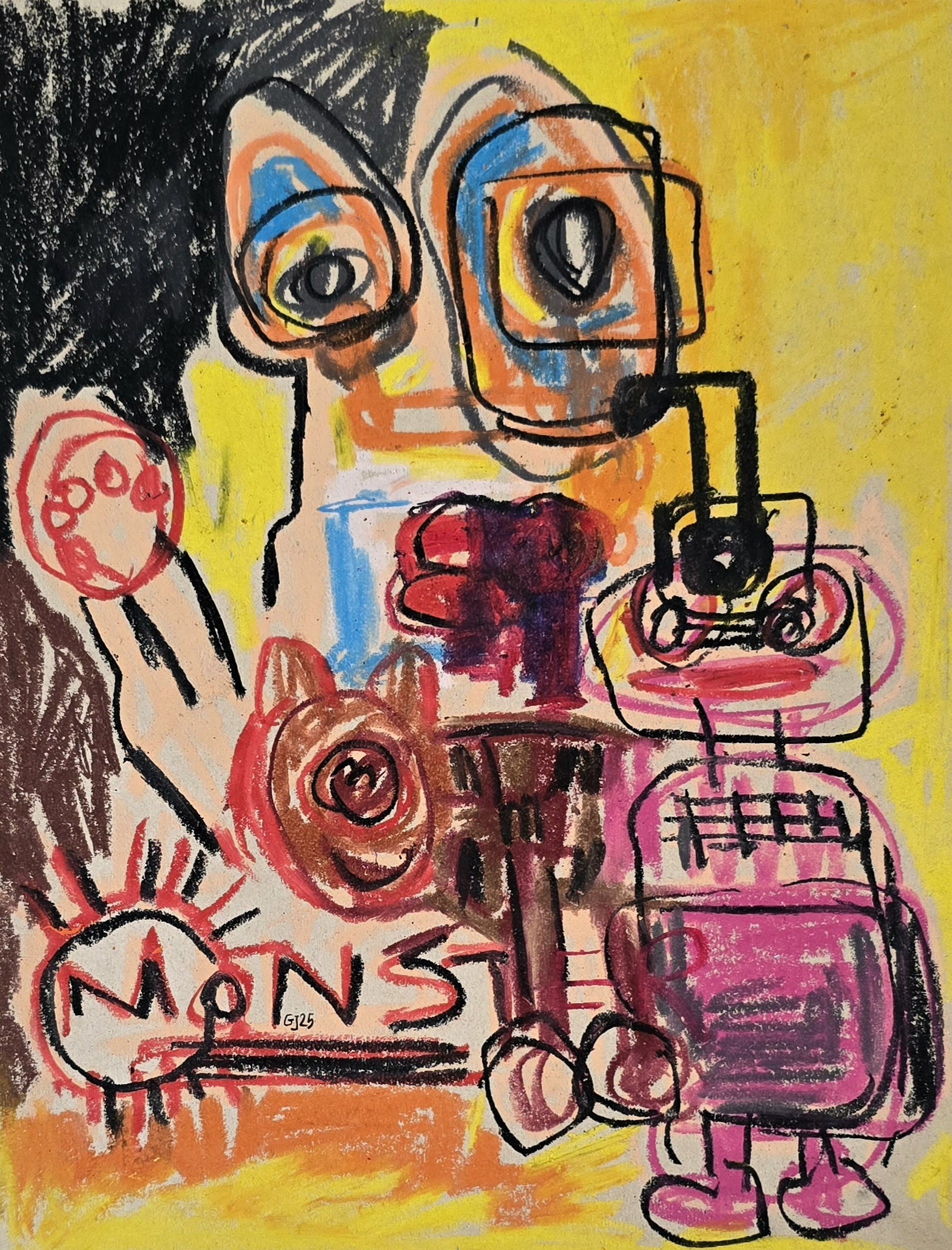 Through her work, Jozdani turns this perspective inside out: the so-called “monsters” are in fact the voices of reason, astonished by humanity’s contradictions. “Why are we called monsters,” they ask, “when humans, consumed by war and violence, are the true architects of chaos?”