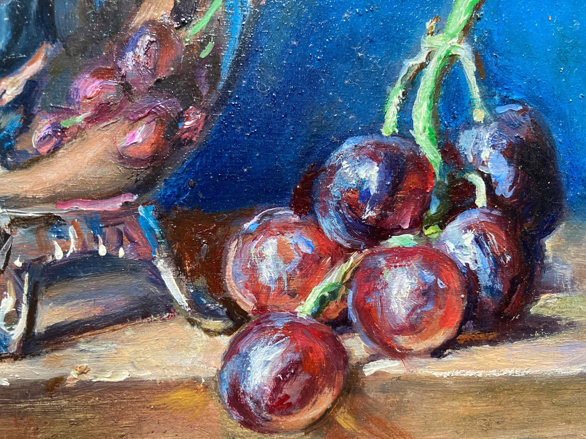 Still Life with Silver and Grapes (Oil on Board Still Life Painting, Russia)