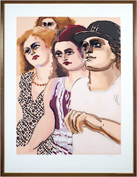 After further study at the Chicago Art Institute, Johnson moved to New York City in 1947 and became one of the first downtown loft-dwellers. He shared a lower East Side studio with Larry Rivers and attended some of Hofmann's New York classes. Rents were cheap but Johnson was broke much of the time as he tried to support his painting through a variety of part-time jobs, including teaching art. In 1950, he and realist figurative painter Philip Pearlstein shared a studio space. Lester's wife, Jo, had introduced the two artists at a time when she and Pearlstein were studying art history at New York University. Johnson's various studios, on the Bowery and elsewhere, were always one flight up with a view of Manhattan's active street life. No wonder, for over fifty years, street scenes have been a dominant part of his art.