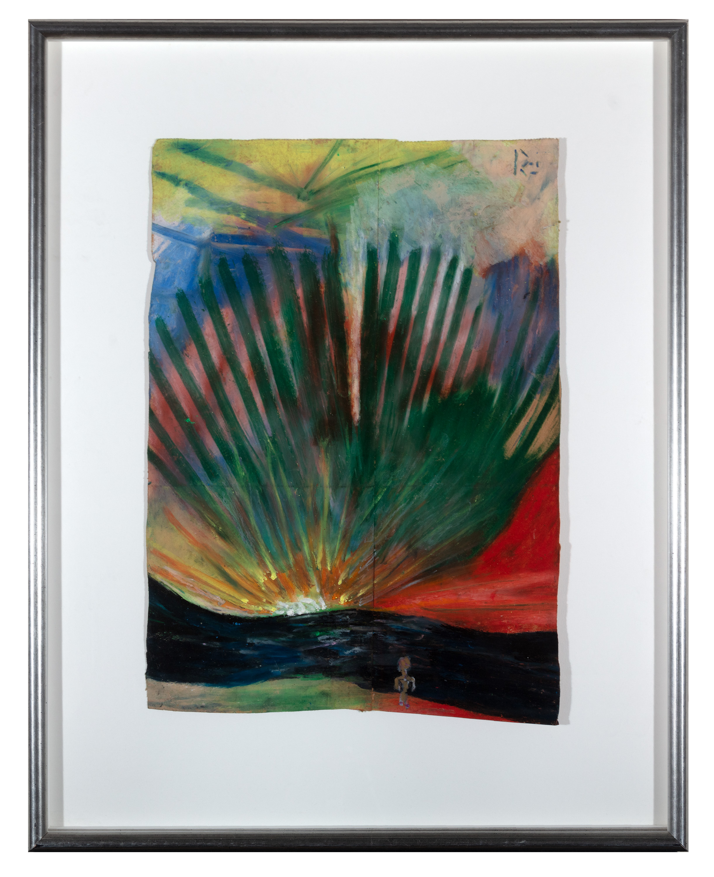 Materials: Oil pastel on grocery bag, signed w/logo upper right