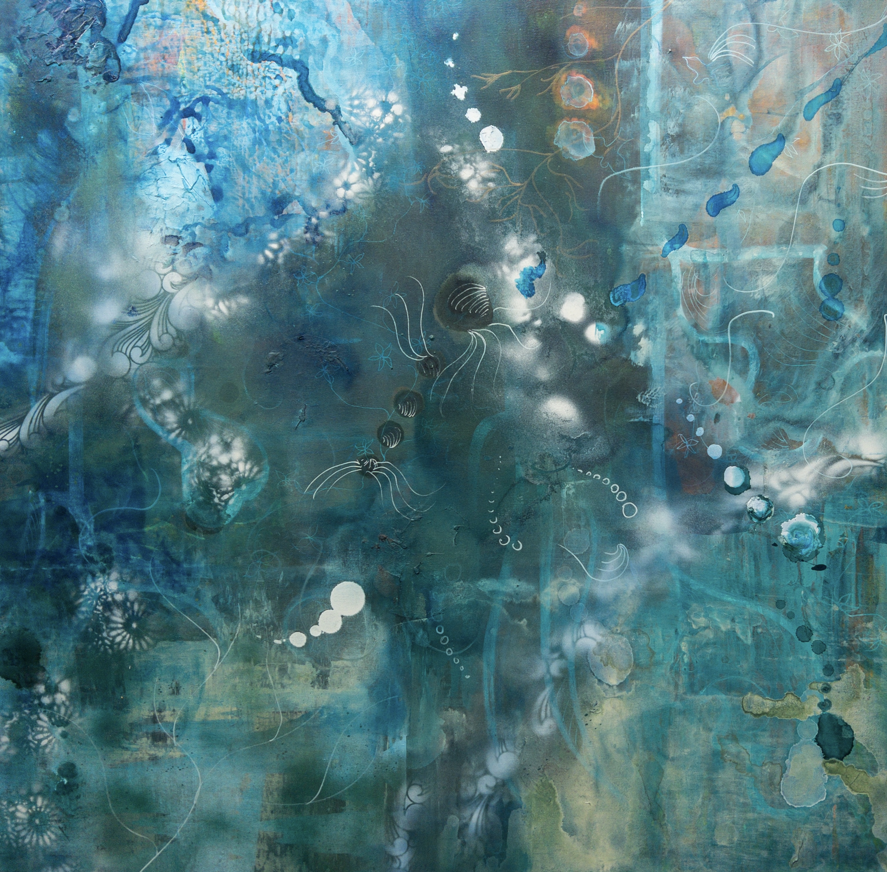 My painting series is inspired by the elements of Earth and beyond and its organic depth of color. I see inspiration in landforms from above, water’s transparency and movement, rocks and minerals and their multiple layers of colors. Many of the materials used in painting are derived from elements of the earth and I use these elements to build something abstract and yet symbolic of what our planet is made of. Circles also have a symbolic meaning of infinity, balance, returning cycles, and the cosmos. I am creating a story of our planet but most importantly a dialogue about climate change and what is infinite or finite. My paintings combine a mixed media of acrylic, oil, ink, and vinyl, spray paint, gold and bronze powder, mica, and melted plastic on linen canvas. We need to preserve our natural environment to create a more peaceful world.