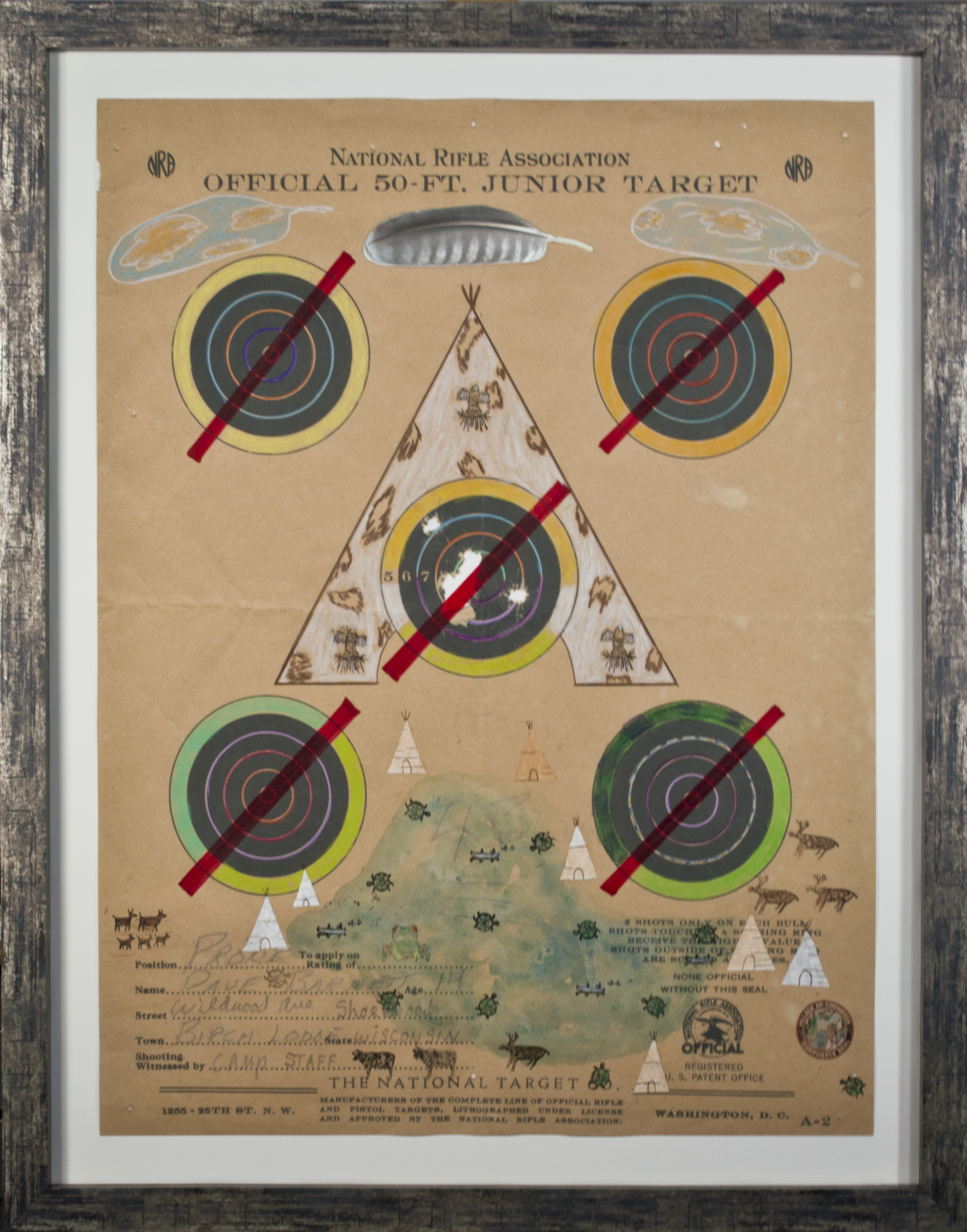 Target Series No. 11: No More Shootings, No More Guns Bald Eagle Spirit Tee Pee with Peregrine Falcon Feather Clouds and Turtle Lake Indian Compound