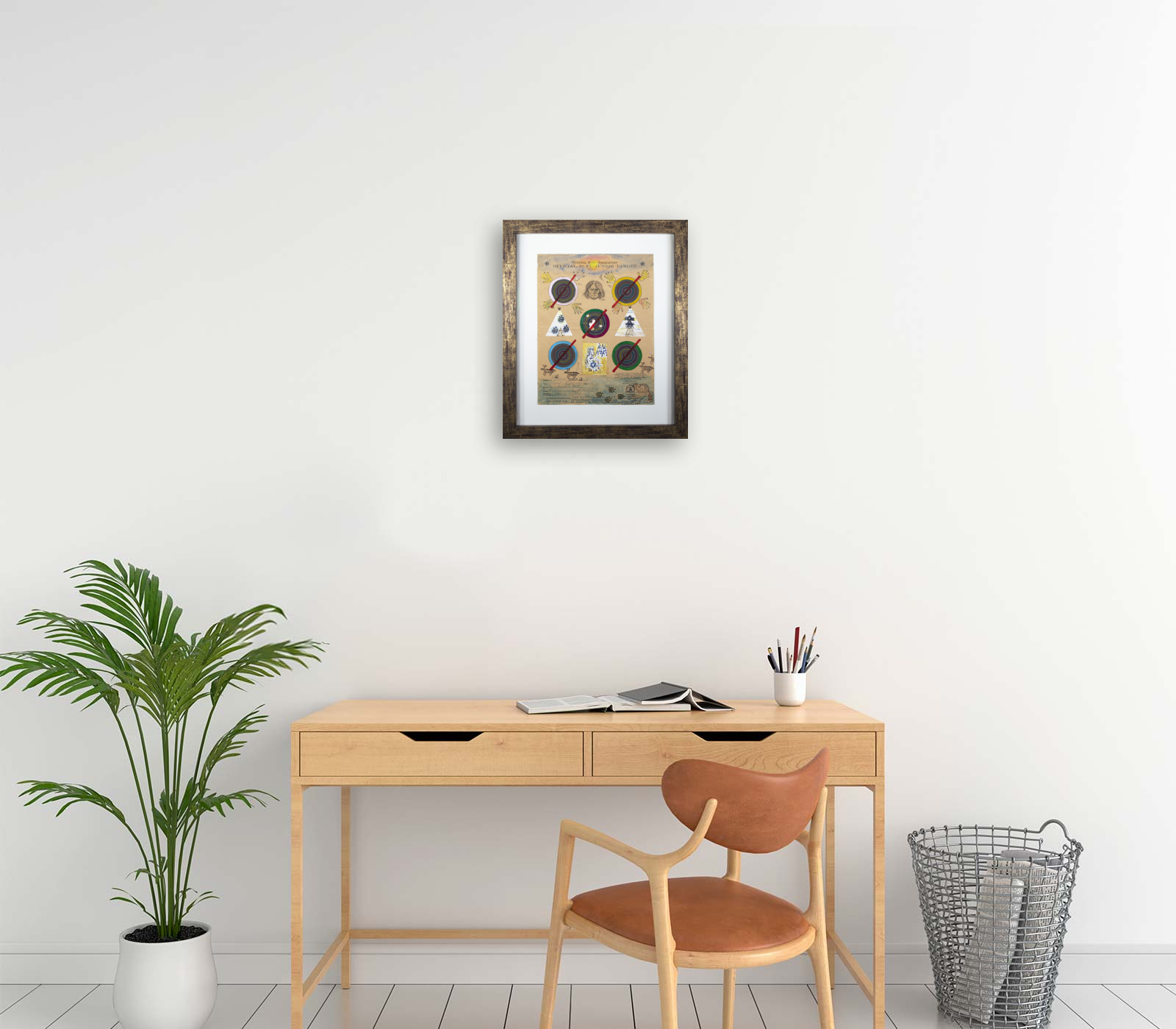 Materials: Mixed media, watercolor, iridescent acrylic, ink, graphite, birchbark, rubber stamps