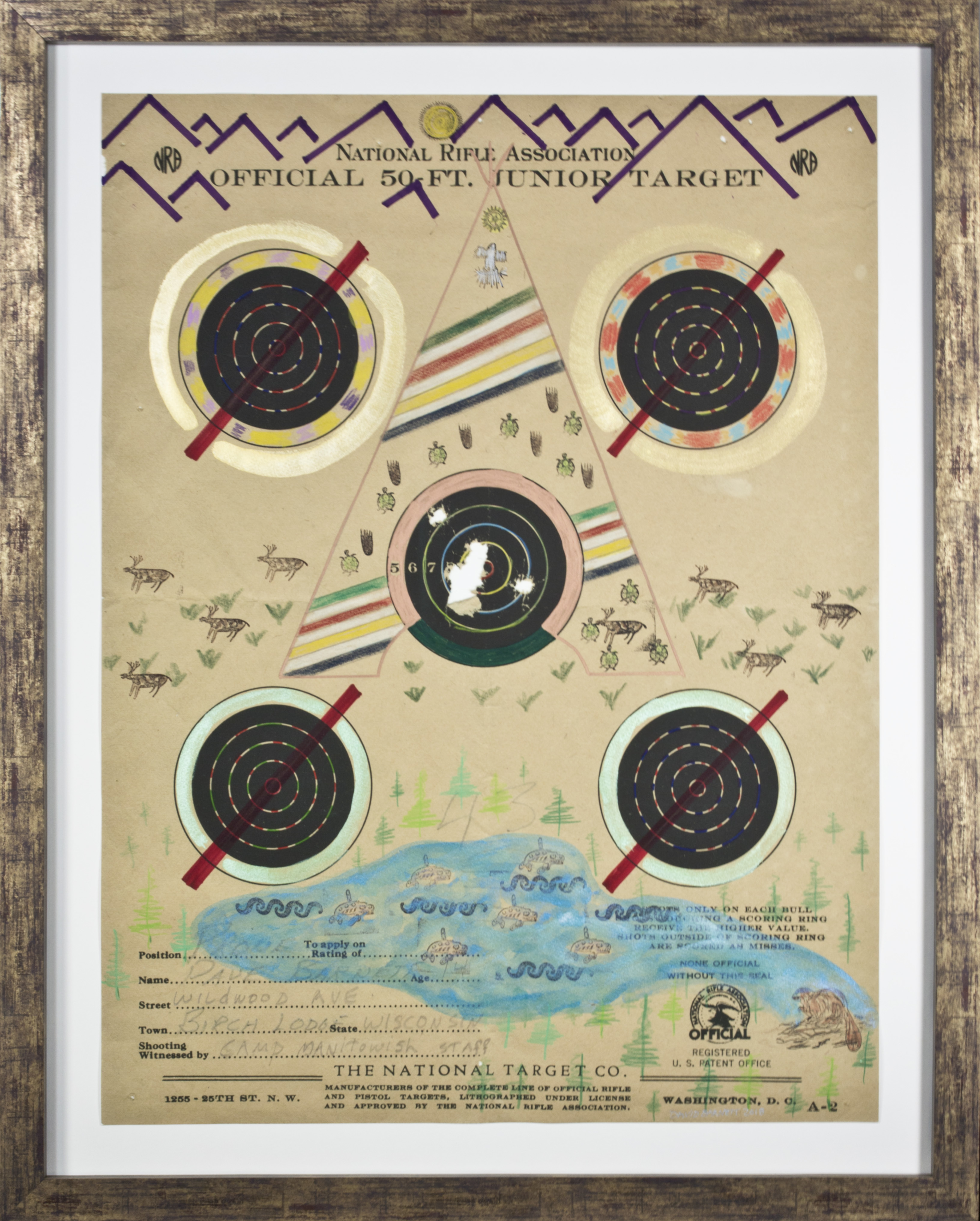 Target Series No. 8: No More Shootings, No More Guns Targeet Tee Pee with Hudson Bay Blanket, Purple Mountain Range and Ocean with Whales