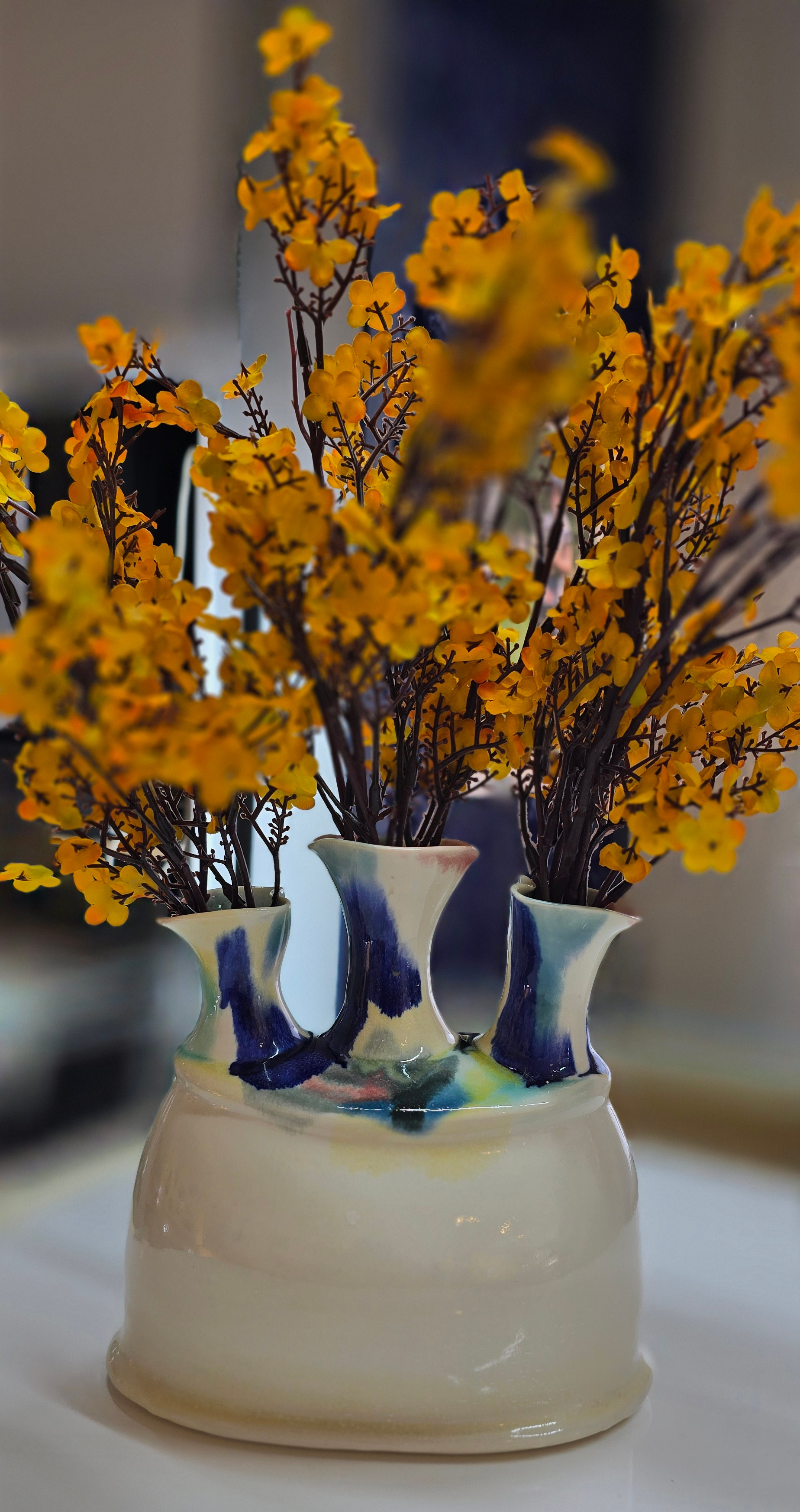 Vase with 3 Openings (Handmade, Pastel, Warm Tones, Smooth, Curvy)