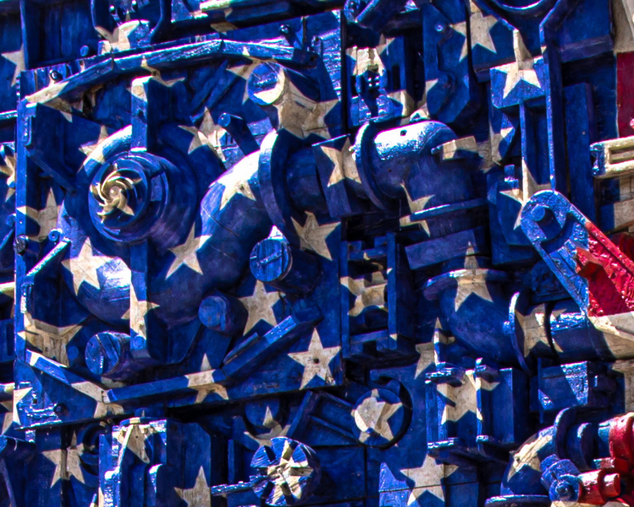 Victory is a striking blend of art, strength, and symbolism. This intricate sculpture, painted in bold red, white, and blue, transforms industrial components into a powerful representation of resilience and unity. Each gear, bolt, and pipe forms part of a larger whole — echoing the spirit of perseverance and the enduring pursuit of freedom. A tribute to craftsmanship and courage, this piece captures the essence of triumph built from hard work and determination.