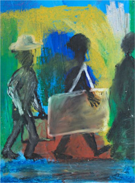 Milwaukee-based artist Reginald K. Gee is known for his visionary Neo-Expressionist style. Born in Milwaukee in 1964 to Native American and African American parents, he is an emerging tour de force in the contemporary and outsider art scenes. Gee’s interpretation of subject matter is unique, inventive and illustrates his command of expression in form, color and language. In his images, he explores a wide range of themes and subjects, including playful musicians, surreal vistas, mystical dreams and fantastic visions. He borrows from his heritage as an African American as well as a Native American, incorporating historical images, symbols, and numerology into his artwork. At the same time, Gee's paintings are figurative, abstract and narrative, expressing through the use of uninhibited color the artist's views of contemporary society. When asked how he learned about art Gee replied, "I didn't. I still haven't learned. You just do it." The Milwaukee Journal Sentinel described Gee's work as "tribal art-derived from Pop Culture and art magazines." In recent years, Gee has participated in dozens of shows including Soul of Black Folk and the Chicago Black Art Expo. Gee is influenced by Pablo Picasso, Willem De Kooning, Francis Bacon, Jean Michel Basquiat and David Salle.