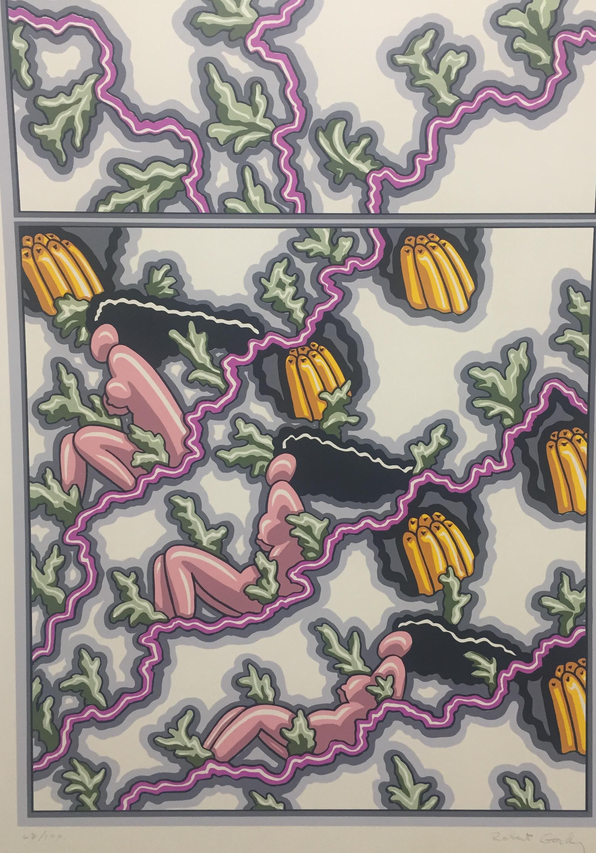 Robert Gordy was unusual in his frequent use of markers, pens and ink to create his images – which are so clean that they look to a contemporary eye to be machine or computer-created. He was enraptured with print-making, and produced many limited-edition print series’. Robert Gordy’s works are in museums worldwide, including the Whitney, MoMA, the Smithsonian and other top-tier institutions.