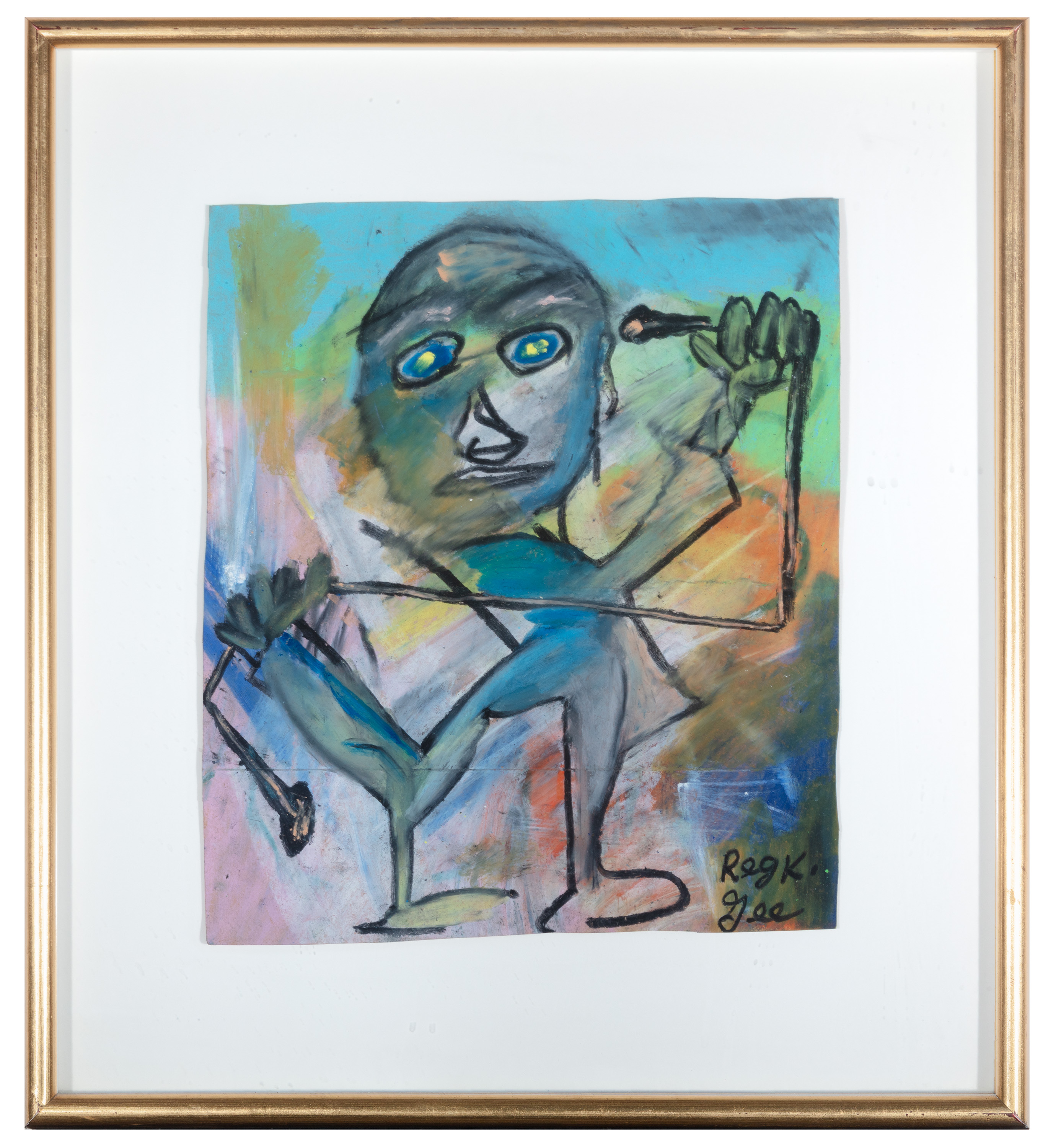 Milwaukee-based artist Reginald K. Gee is known for his visionary Neo-Expressionist style. Born in Milwaukee in 1964 to Native American and African American parents, he is an emerging tour de force in the contemporary and outsider art scenes. Gee’s interpretation of subject matter is unique, inventive and illustrates his command of expression in form, color and language. In his images, he explores a wide range of themes and subjects, including playful musicians, surreal vistas, mystical dreams and fantastic visions. He borrows from his heritage as an African American as well as a Native American, incorporating historical images, symbols, and numerology into his artwork. At the same time, Gee's paintings are figurative, abstract and narrative, expressing through the use of uninhibited color the artist's views of contemporary society. When asked how he learned about art Gee replied, "I didn't. I still haven't learned. You just do it." The Milwaukee Journal Sentinel described Gee's work as "tribal art-derived from Pop Culture and art magazines." In recent years, Gee has participated in dozens of shows including Soul of Black Folk and the Chicago Black Art Expo. Gee is influenced by Pablo Picasso, Willem De Kooning, Francis Bacon, Jean Michel Basquiat and David Salle.