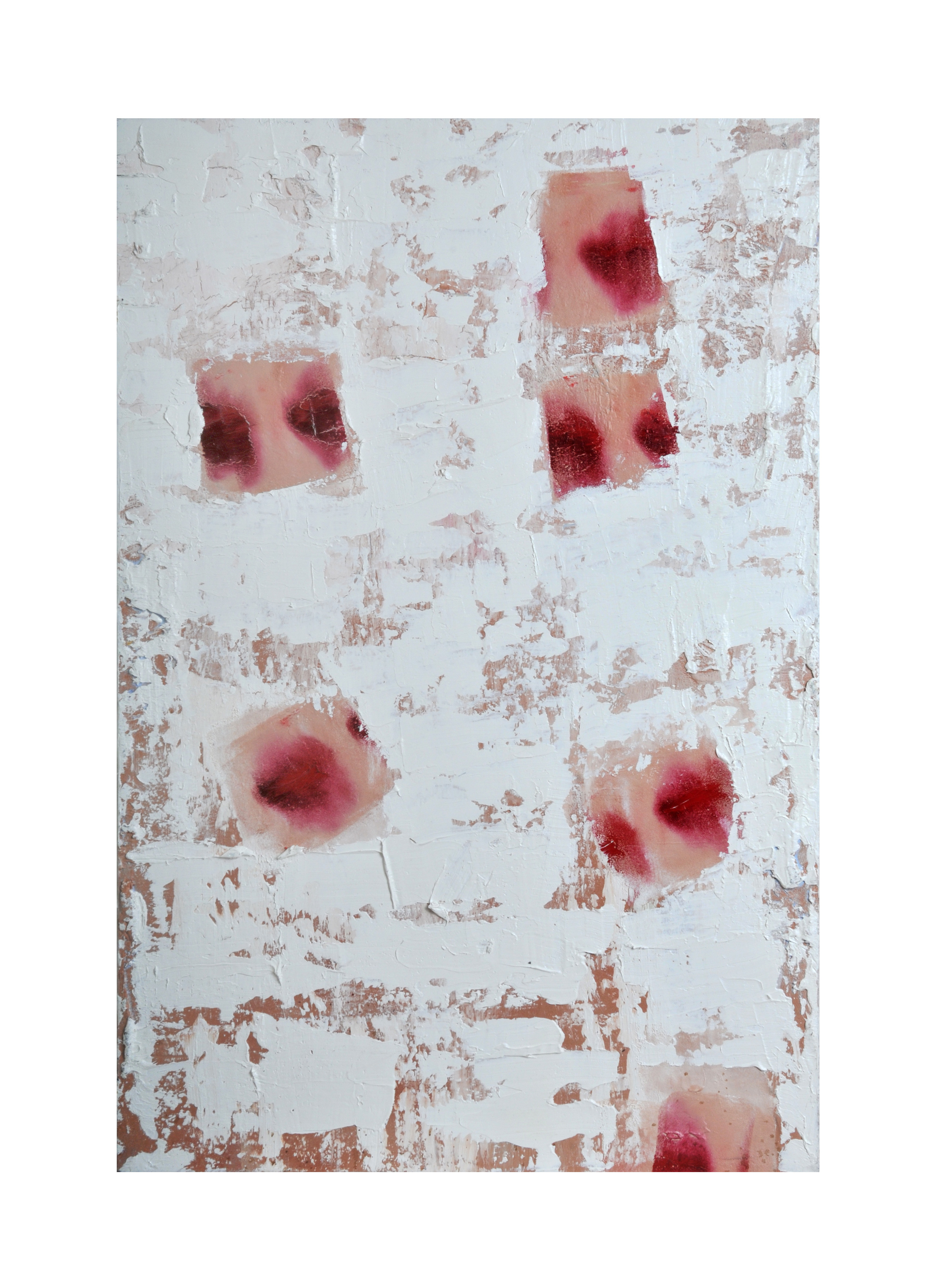 I create semi-abstract, grotesque faces and bodies. These works are character studies of figures sometimes sprung from my imagination and other times based on people I once knew. The way in which I combine and arrange the figures creates a mysterious and quiet world inviting the onlooker to use their imaginations too fill in the missing pieces or narrative. My paintings are created through the process of actively manipulating the oil paint over a textured surface. Layers are built up by overlapping and using violent strokes thus, creating various densities and textures. The palette is mostly garish/acidic colors, colors of discord. Occasionally, a bright color pops out of muddy ground. One can witness traces of color buried beneath, suggesting the time invested in making the pieces. Like memories, paint layers are built one on top of the other. When I have one color in mind, before I know it another color will be on top of that one and then another; until the right combination is reached in my mind. Then and only then I feel the painting is done.