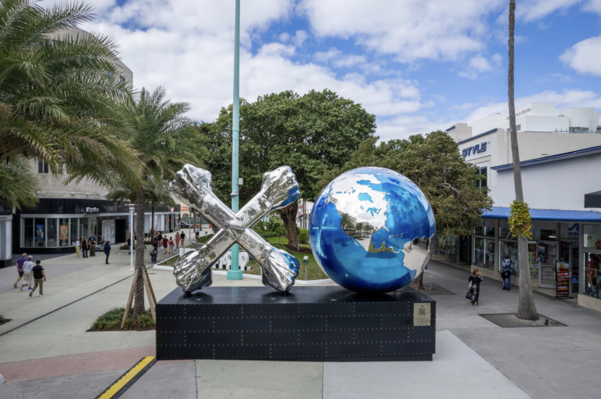 The XO World sculpture is inspired by the universal game of Jacks, which dates back to ancient times and has created happiness amongst various cultures worldwide. The ‘X’ of the sculpture illustrates the Jack with crossed arms each representing the four pillars of XO WORLD Project - equality, unity, peace, and love; and also represents “Love” in sign language. The ‘O’ is represented by a globe bringing humanity together as one. Made from 20,000 lbs. of stainless steel, XO World is 12-feet high and spans 24-feet long, towering above standing viewers. A focal point for tourists from around the world, it was formerly located at One World Trade Center on the West Plaza at 285 Fulton Street.