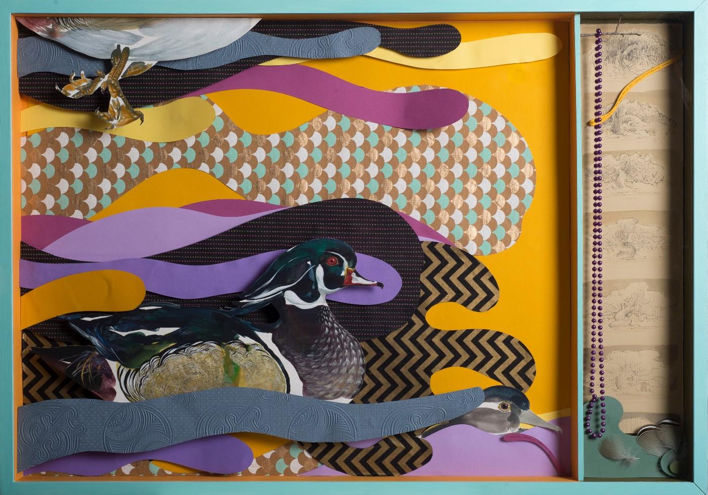 Hitnes, Wood Duck (Dance for Nola), 2017. Watercolor and graphite on paper in wooden frame.