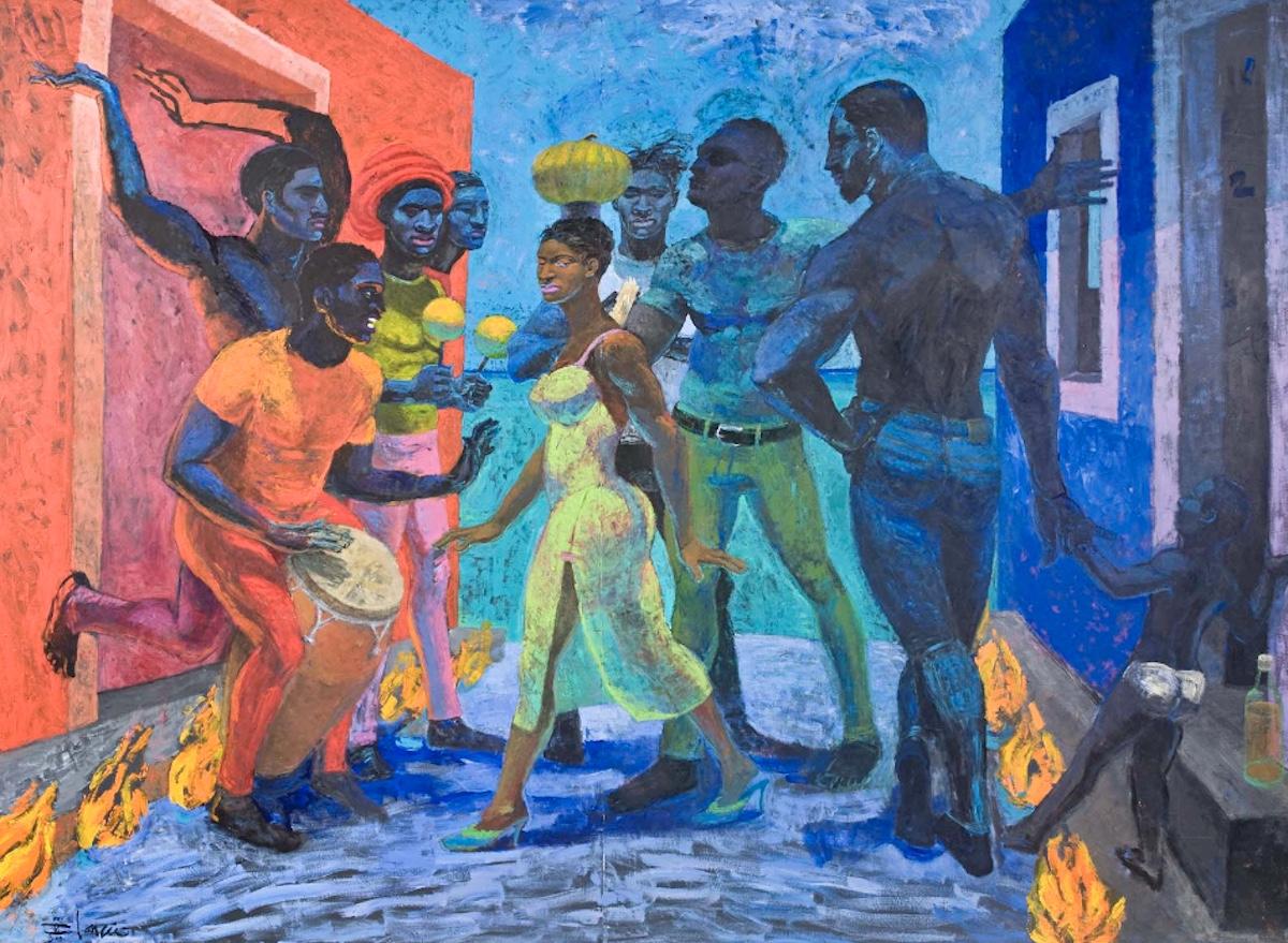 Carlos Cancio "Through the fiery Antillean street goes Tembandumba de la Quimbamba" (2003), Acrylic on canvas, Collection of Museum of Art of Puerto Rico.