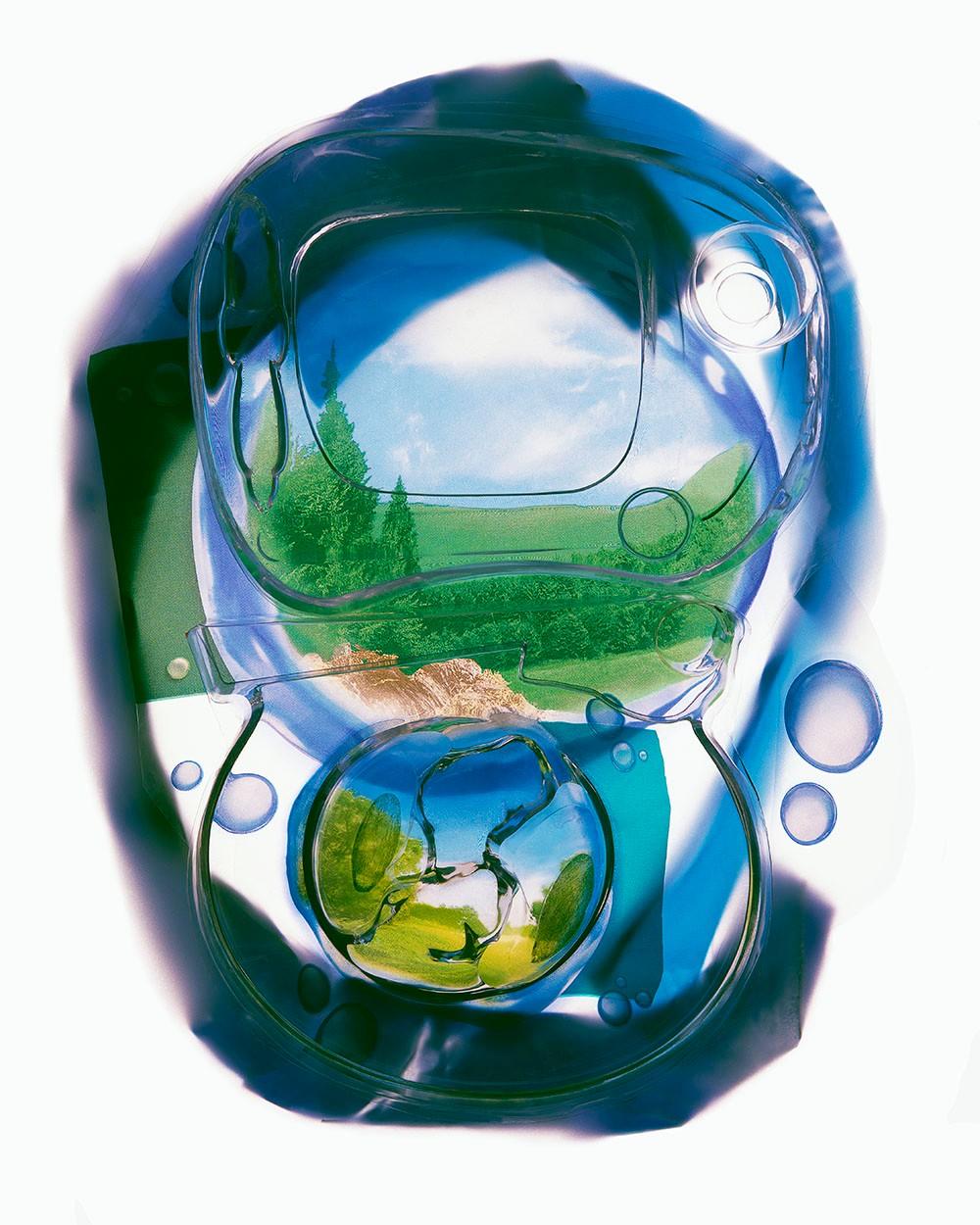 Merging abstraction and symbolism, All Consumed initiates a conversation about water as a valuable natural resource and the environmental implications of our consumeristic consumption of brand name bottled water. A fourth-generation Coloradan, Emrich is deeply concerned with issues such as water commodification, scarcity, and waste. More a camera-based artist than a traditional photographer, Emrich combines his own work with the pristine alpine imagery favored by bottled water advertisers, fabricating landscapes using water-bottle labels and molded plastic blister packs, ultimately photographing them with a view camera. The resulting monumental digital prints utilize the bold graphics and bright colors of the packaging, creating visually stunning work that elevates disposable trash into art, while questioning our concepts of beauty and the impact of consumerism on our water supply. The mountain peaks and rushing rivers of the advertising imagery, combined with the shapes and contours of plastic bottles and packaging, comment on consumer manipulation through ad art, growing water scarcity and how consumerism, and its detritus, impact water sources.