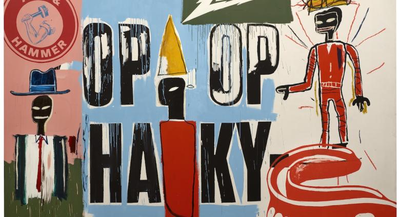 A self-taught artist, Jean-Michel Basquiat fortuitously met his artistic hero, Andy Warhol, when he was beginning to pursue his celebrated creative career. At seventeen years old, Basquiat spotted Warhol having lunch with curator Henry Geldzahler at a restaurant in Soho. He approached the artist and NYC Commissioner of Cultural Affairs to show them his postcard-size collages.