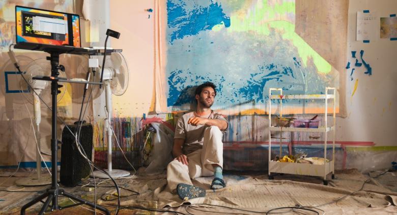 One of the art world’s rising stars, Paris and NYC-based French painter Alexandre Lenoir (1992) captivates audiences with his otherworldly, mysterious creations of paint and masking tape.