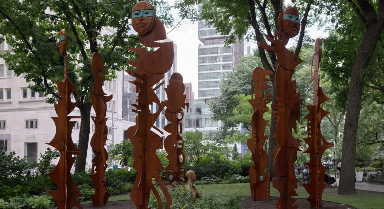 A sense of interconnectedness resides at the heart of mixed-media artist Rose B. Simpson’s work. In Seed, to produce the least amount of steel plate waste for her monumental figural “stylized abstractions,” Simpson puzzle-pieced the sections to fit together– in part as “a metaphor for our connection.”