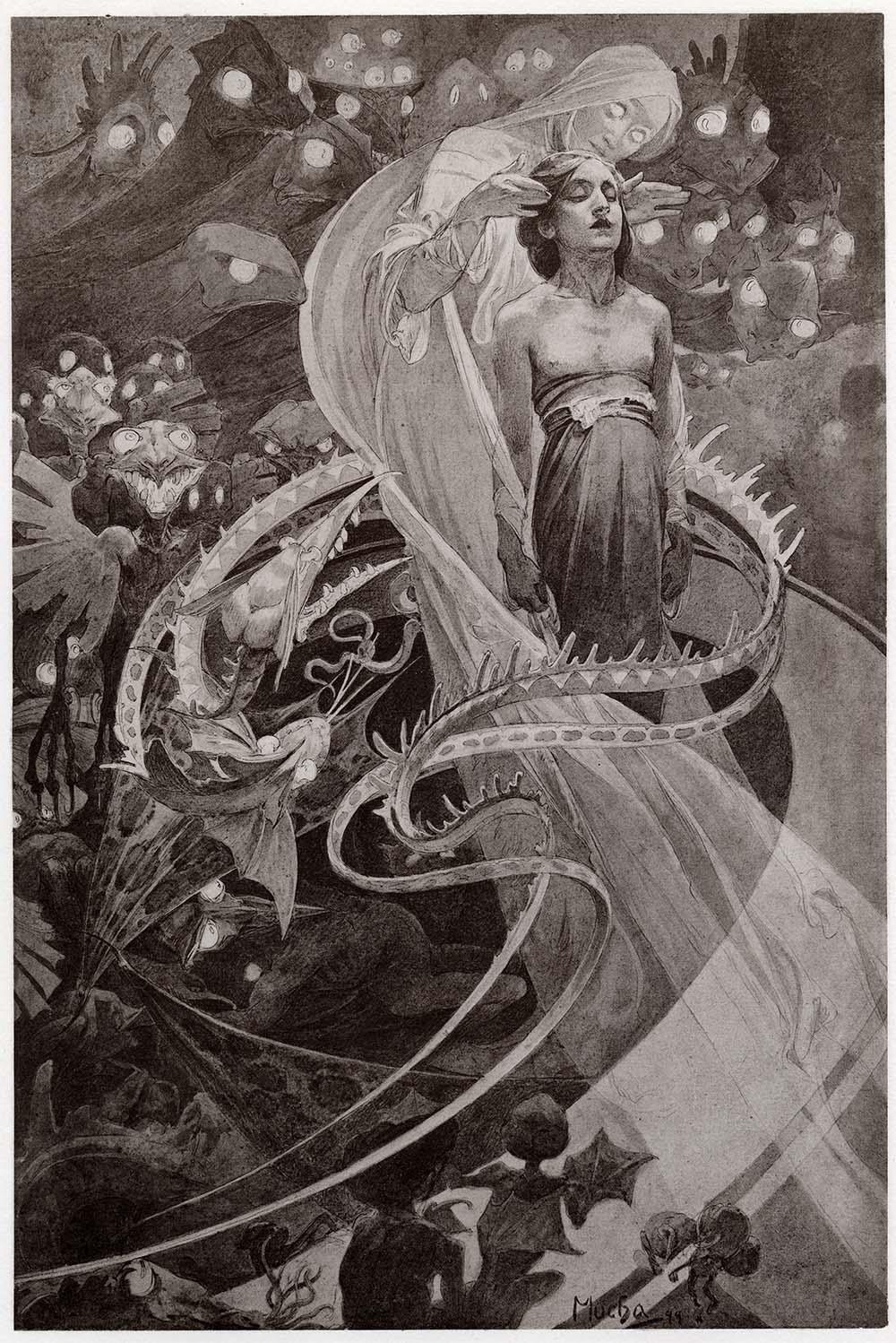 Alphonse Mucha, Seventh allegorical page from Le Pater (an illustrated edition of the Lord's Prayer), 1899.