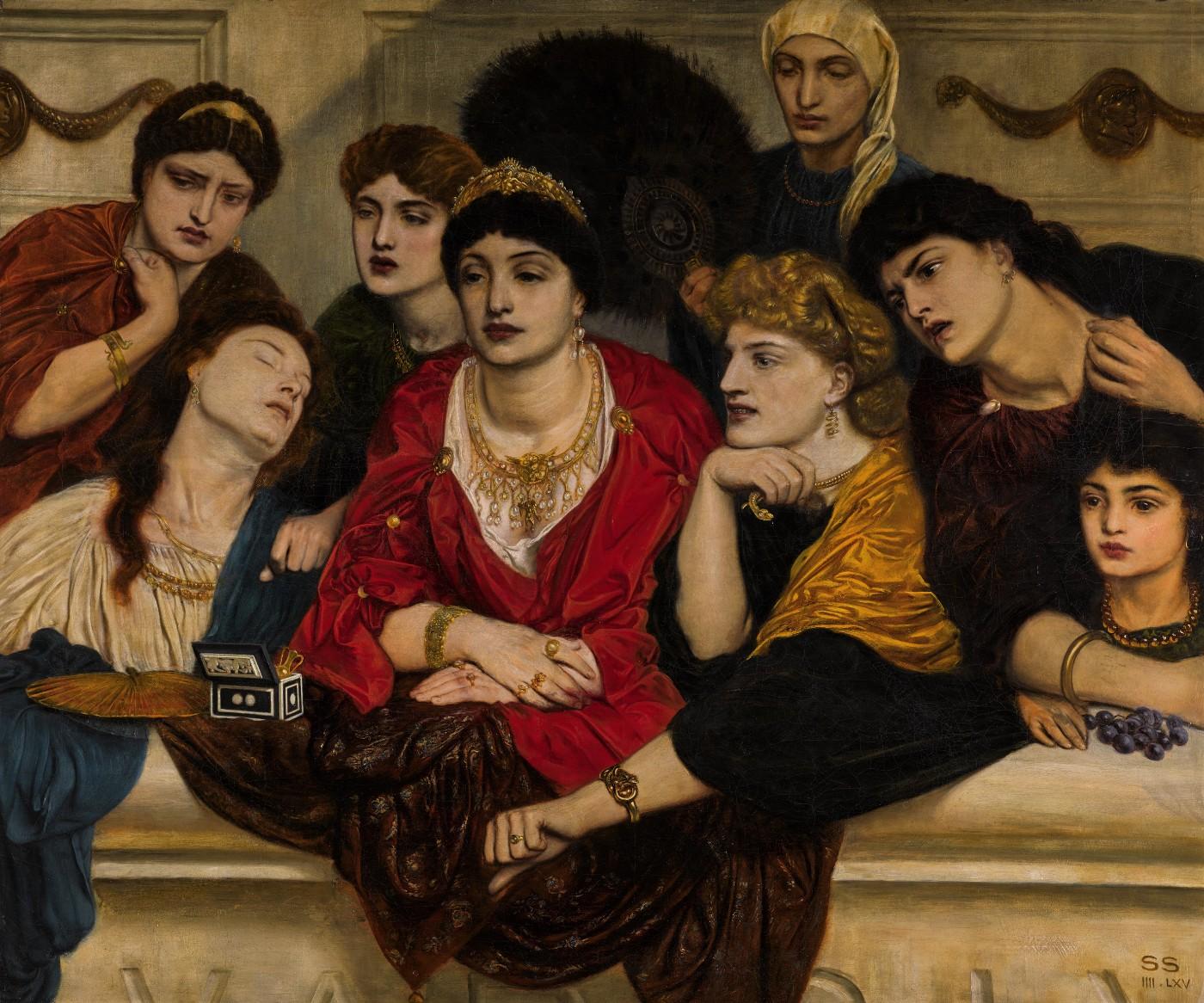 Habet! In The Coliseum A.D.XC, a highlight of the upcoming sale, demonstrates Solomon’s complexity and modernity. The title “He is hit!” evokes the climax of a gladiatorial battle, but Solomon elides this violence, depicting a balcony of magnificently dressed female spectators. He deftly captures their reactions: one faints, another furrows her brow in concern, while another sneers in vicious excitement. The crowned woman at the painting’s center remains disturbingly apathetic, numb to human suffering. Solomon’s interest in the figures’ unconscious expressions was in keeping with the emerging science of psychology, then beginning to explore the links between mind and body. A self-reflexive picture, Habet! ultimately invites its viewers to reflect on their own emotional responses to art and spectacle.