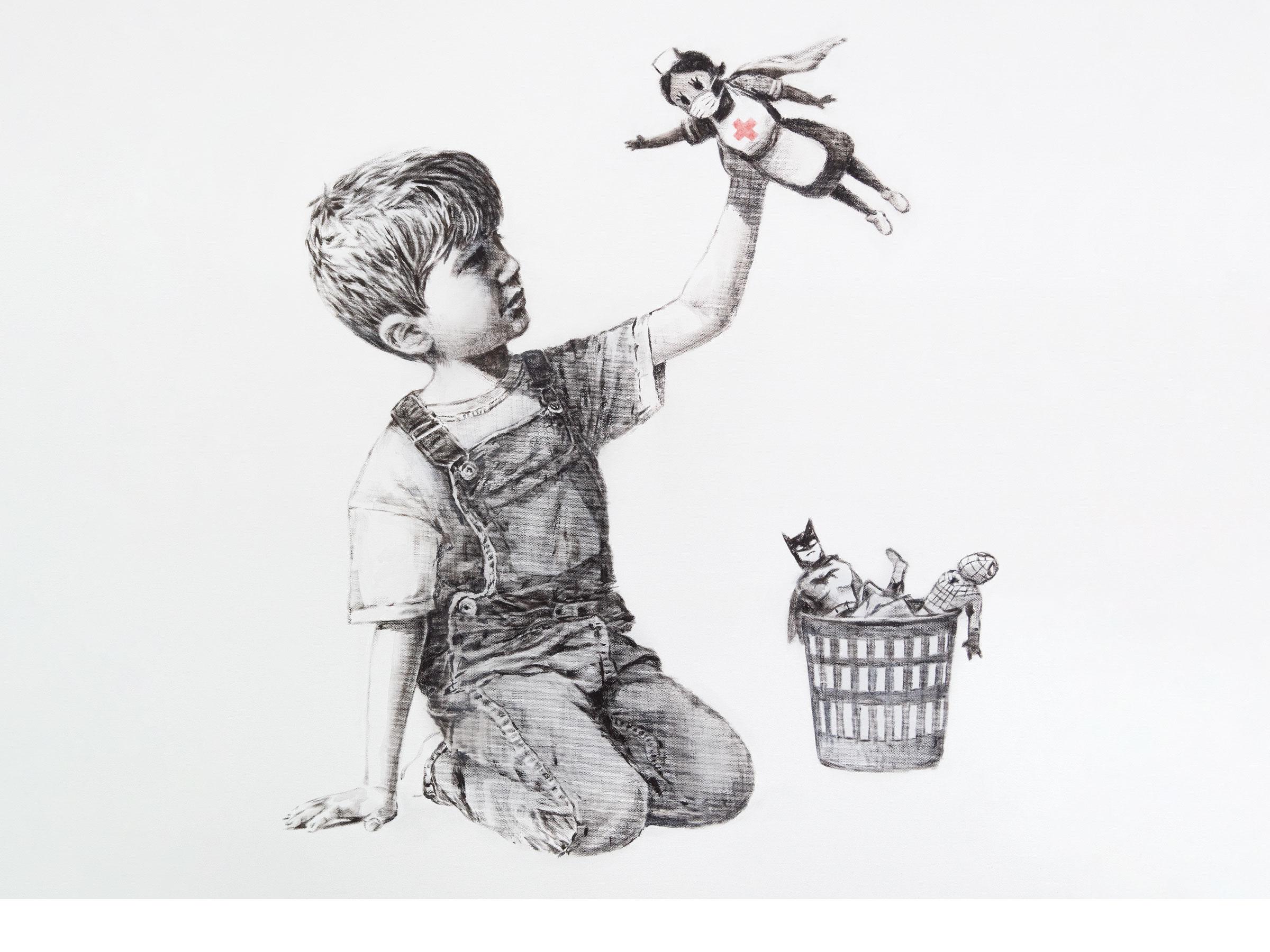 Though much of Banksy’s work relies on dark humor and cultural criticism, this joker clearly has a soft side, too. Instead of his usual guerrilla-style graffiti, this work of art, titled Game Changer, arrived neatly framed at Southampton General Hospital, where it will hang as a reminder for the busy nurses and doctors of how inspirational their work and sacrifice are.