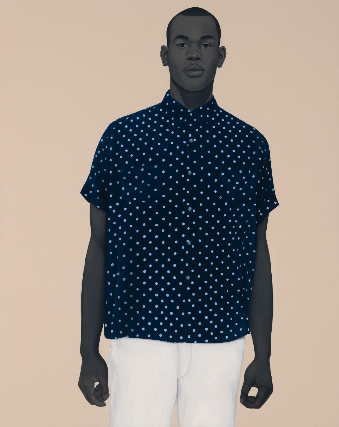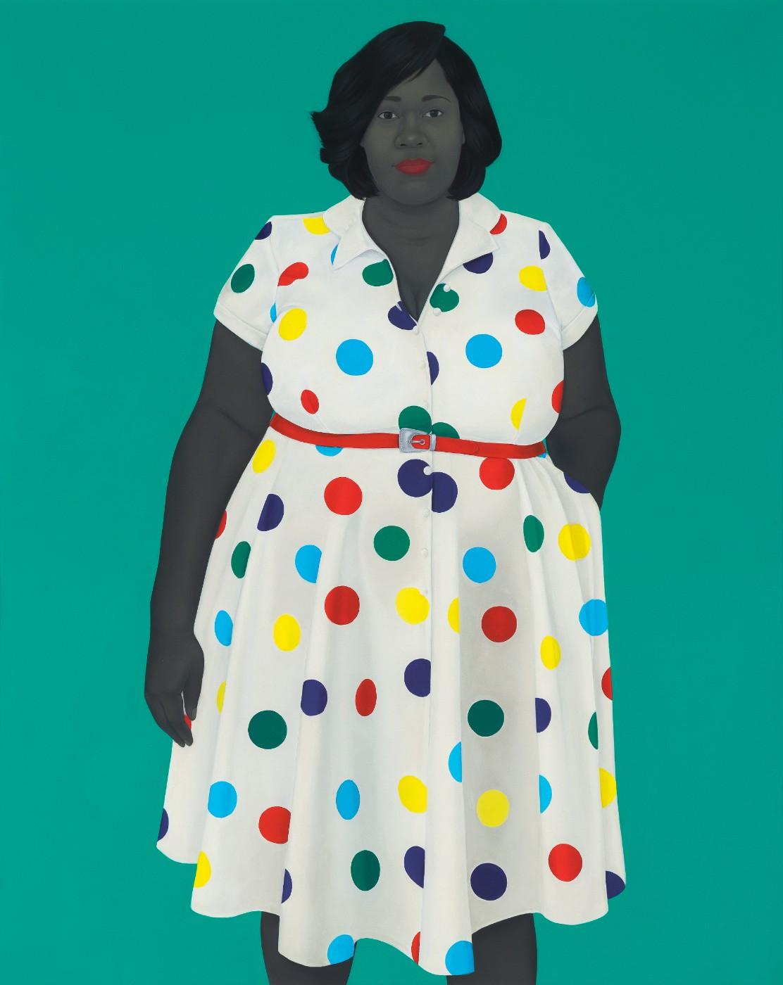 Known for working in her version of the American Realist tradition, Sherald creates stylized images that bring us into an intimate conversation with her subjects. Known for portraits where melanated skin is rendered in grayscale and clothing and background pop with bright colors, Sherald seeks to broaden the art historical canon by adding her intimate images of African Americans. In translating brown skin into grisaille, she simultaneously draws attention to skin tone while denying that it is the only thing that defines her subjects.