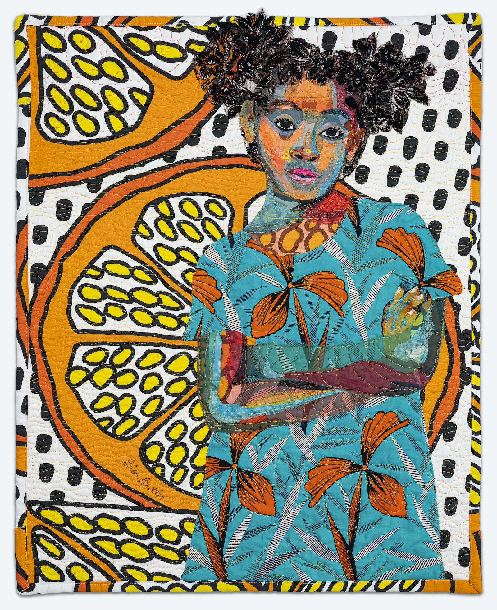 “The vibrancy and scale of Butler’s work really captivates viewers, and once they are pulled in, they experience an often startling realization regarding materiality; that is, they discover what they are looking at is fabric rather than paint. This surprise paired with the arresting faces of her subjects fuels even closer looking. The complementary layers of narrative and materials create an immersive, dazzling, and compelling aesthetic experience,” says Erica Warren, Associate Curator of Textiles at the Art Institute of Chicago.