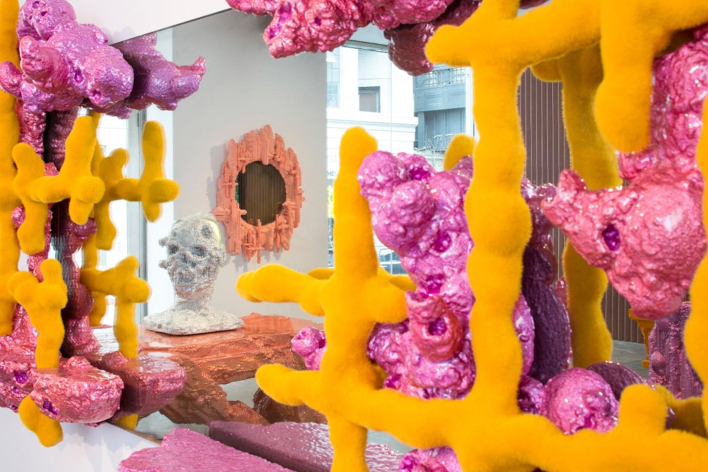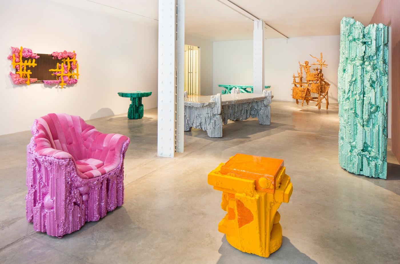 In Chris Schanck’s solo exhibition at Friedman Benda, furniture seems capable of taking on a life of its own. The show's title, ‘Unhomely’, warns us not to get too comfortable. The play on 'home' and 'homely' advises us to look beyond the beautiful exteriors of the objects that inhabit our homes. While Schanck’s sculptural furniture could be reassuring objects of convenience, its otherworldly forms suggest it might have its own plans once we turn our backs. Combining rough, organic textures and vibrant colors, Schanck’s works seem like alien lifeforms. Perhaps the natural furnishing of another world (like Superman’s Fortress of Solitude, or a planet Barbarella might visit), ‘Unhomely’ reminds us of the duality of our own home, Earth, which is rapidly changing, and can be both maternal and hostile to us. This biomorphic furniture looks like it grew out of the earth, but not an earth we know or are familiar with, another one that might not be welcoming to us. In an uncertain, even dystopian future, Schanck’s furniture would like right at home.