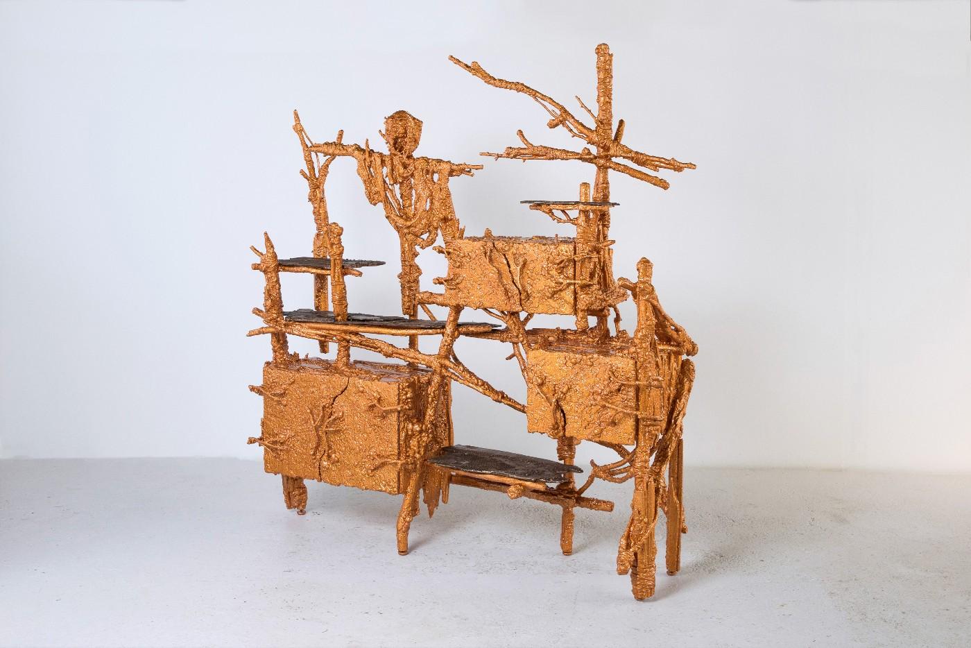Straddling the worlds of art, design and craft, Schanck’s furniture is a high-end hybrid, fully functional as furniture, and provocative and intriguing as conceptual objects. The Detroit-based artist uses a unique ‘ALUfoil’ process, enshrining refuse and industrial materials in aluminum foil, which are then sealed in resin. In not only his use of found materials, Schanck’s work reflects Detroit, a city that is full of growth and decay. Schanck’s furniture has a similar feel, its fragmented forms and textures evoking both deconstruction and fragile new growth.