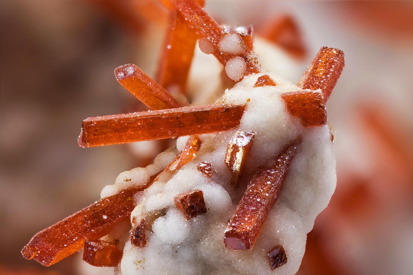 Dundasite (white) and Crocoite (red orange) from Dundas, Tasmania, 2009. License
