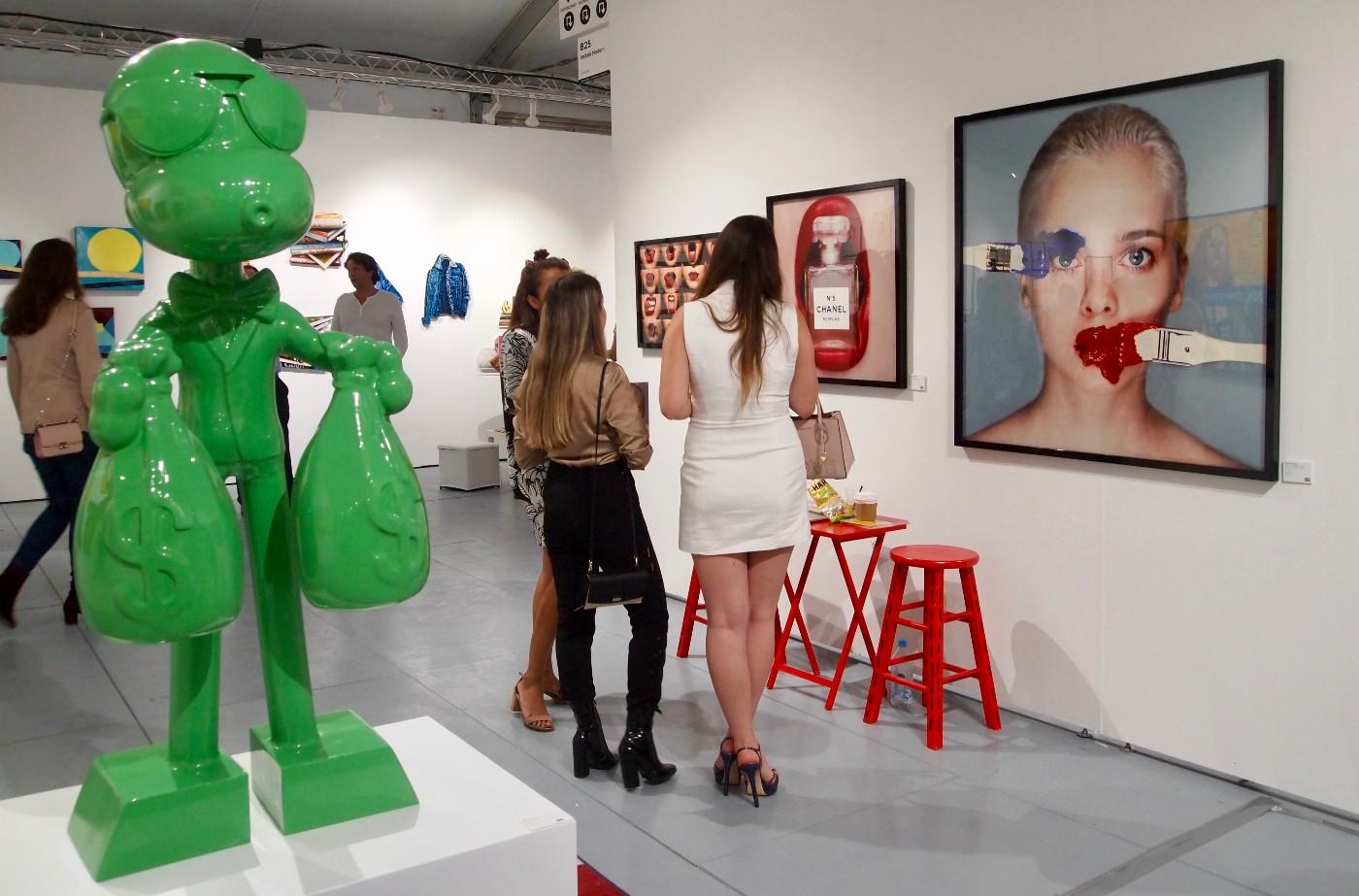 Then there’s the much-hyped Young Thug/classical painting installation by Netherlands-based artist Hajar Benjida. Visitors can interact (and even take home) large flip-book slides, alternating between iconic paintings from the Western canon with elaborate and luxurious photographs of the American rapper (known for his eccentric vocal style and gender-fluid fashion sensibility). And at the heart of the show lies the immersive Yok & Sheryo's Devil's Lounge: part installation and part VIP parlor curated by the independent, artist-run Superchief Gallery. The 35-foot wide demon-head structure is filled with surreal murals and furniture pieces/artifacts perfect for artful engagement and Instagram.
