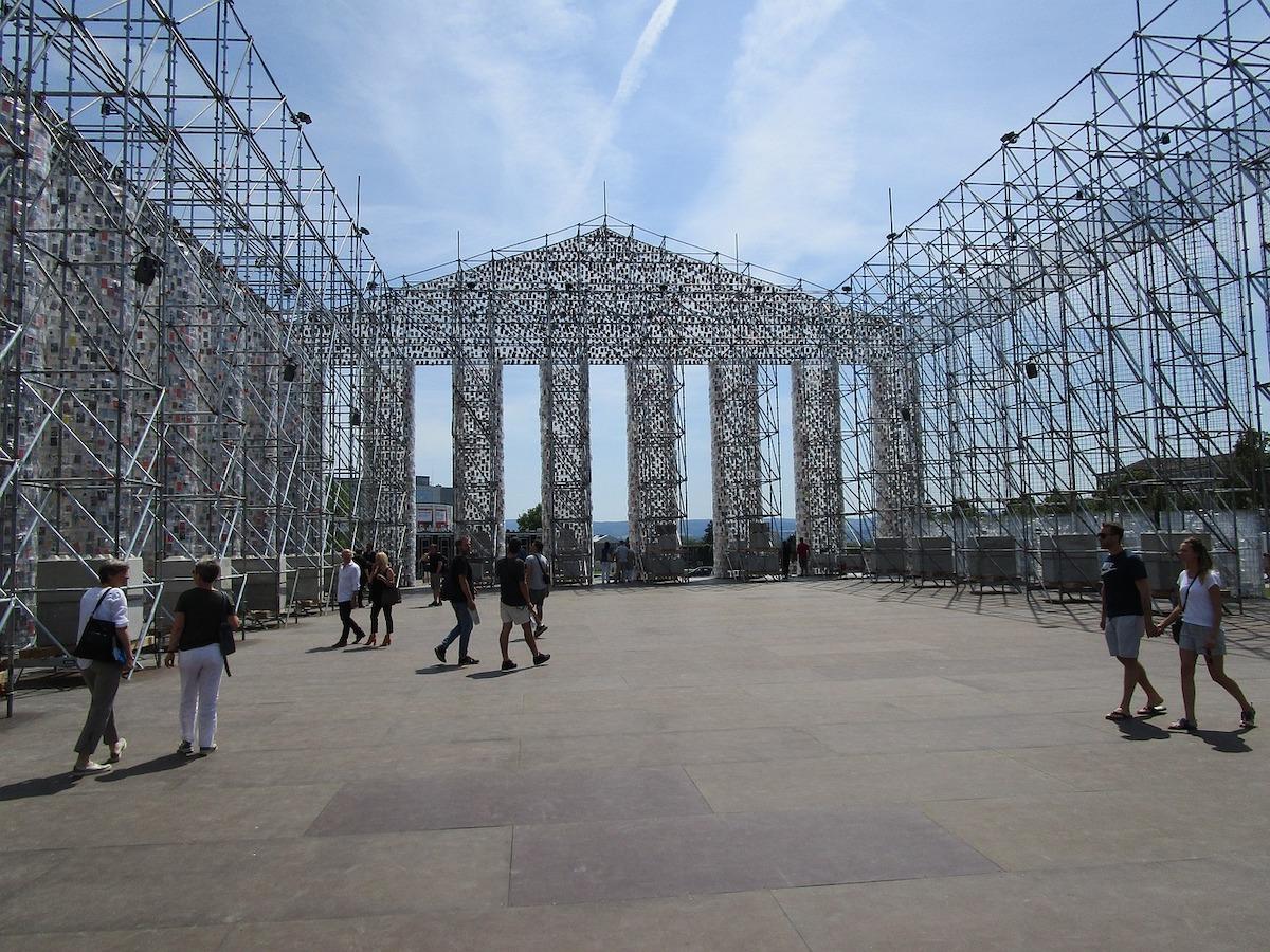 Argentinian artist Marta Minujín took the Parthenon as a model of political and aesthetic democracy. Her 1983 work, Parthenon of Books, which was staged at Documenta in 2017, offered a replica of the Greek temple but comprising books that were banned during Argentina’s military dictatorship of 1976-1983 against left-wing political opponents.