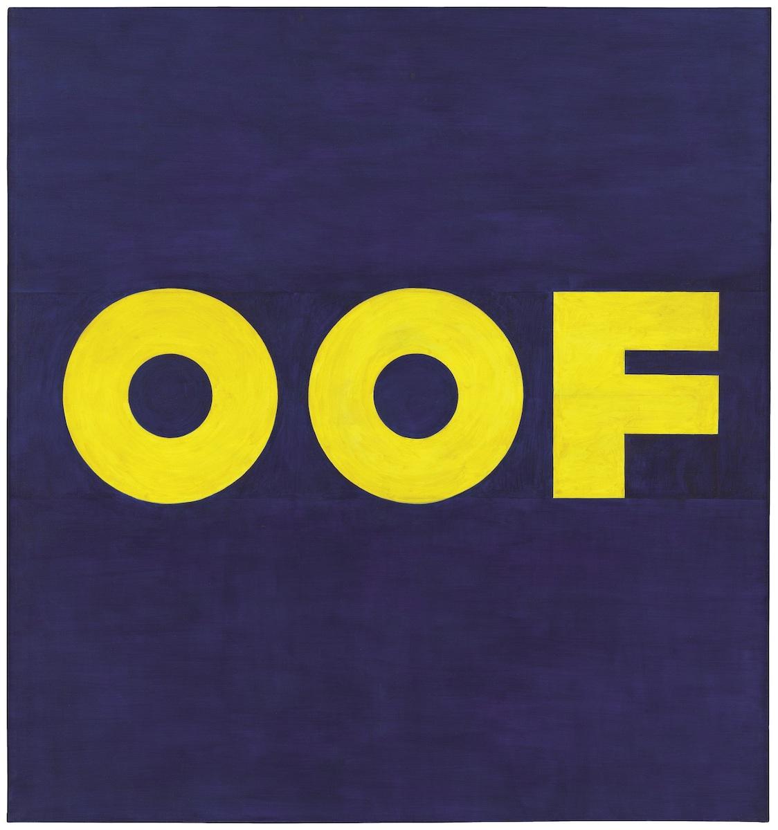 His work was initially received as a Left Coast variant of Pop Art, but this wasn’t precisely accurate. Influenced by Jasper Johns and René Magritte’s iconic work La trahison des images [Ceci n'est pas une pipe], Ruscha focused on the relationship between words and meaning and how both are rendered abstract by graphic design. Compositions such as Oof (1962) spell out their eponymous subjects in various typefaces familiar from advertising and magazines, setting up a tension between word-as-signifier and word-as-object. In this sense, Ruscha was as much of a conceptualist as he was a Pop Artist.