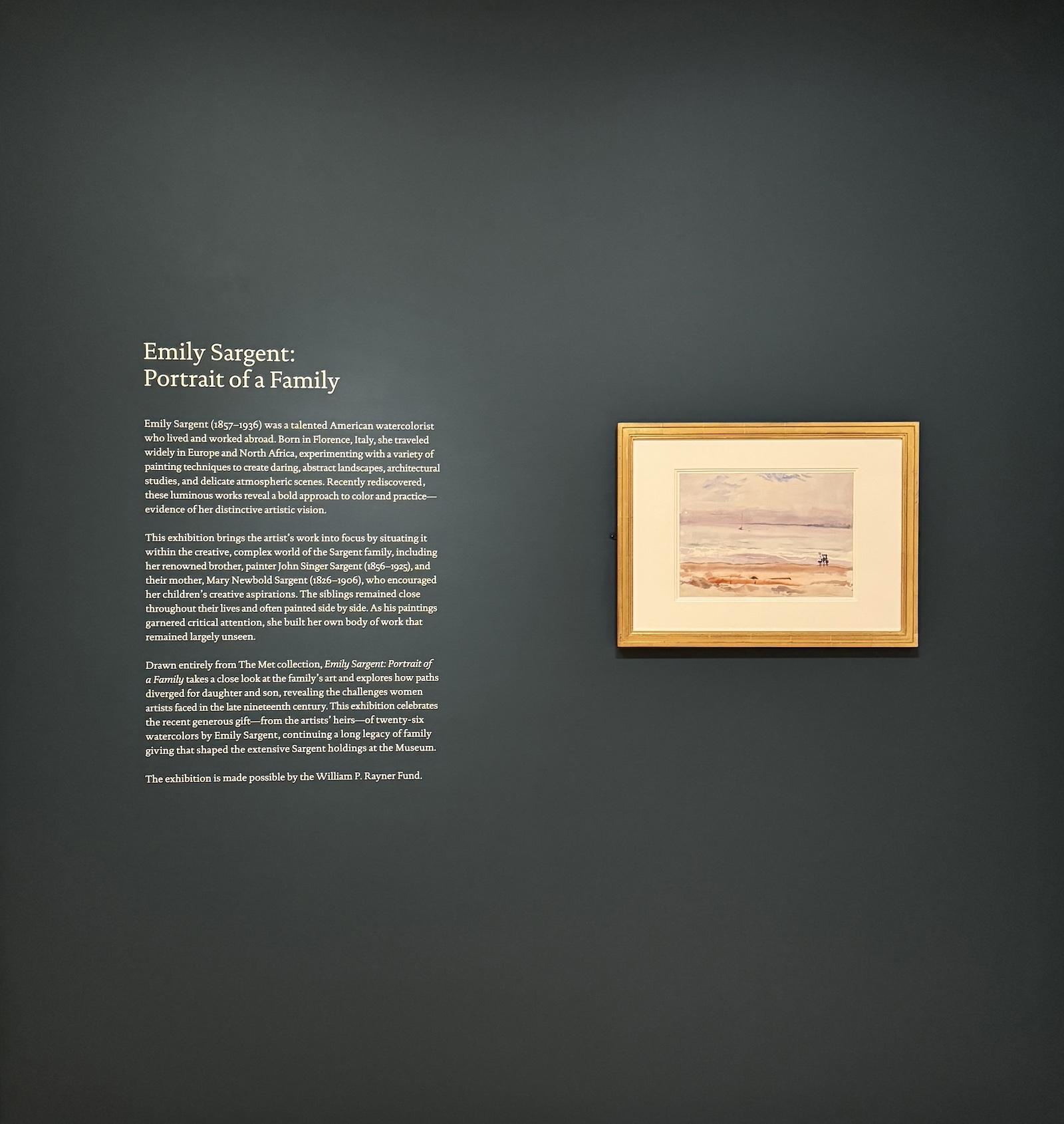The Met’s Emily Sargent: Portrait of a Family presents a thoughtfully curated glimpse of the Sargent family, centering primarily on the long overlooked watercolor paintings of Emily, sister to the illustrious John Singer Sargent