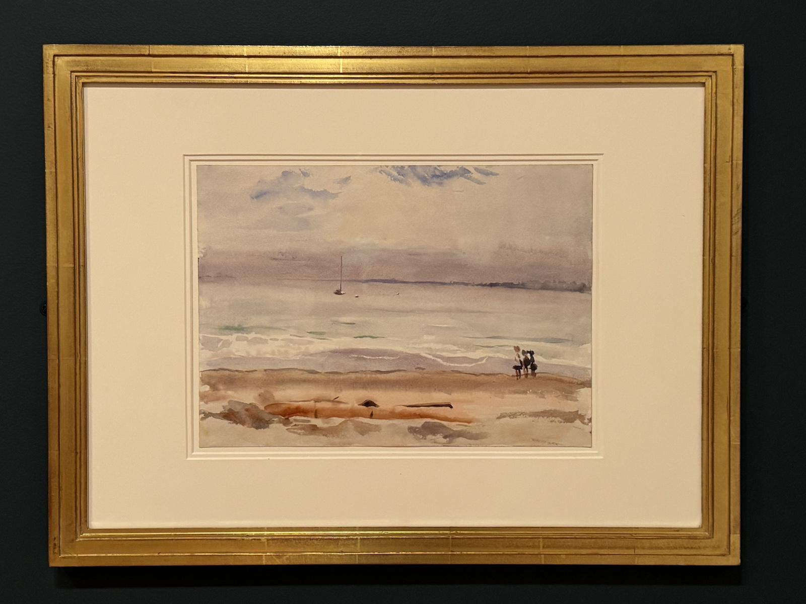 Sea with Boat & Figure, Pride’s Crossing (1923) by Emily Sargent. Watercolor and opaque watercolor on paper.