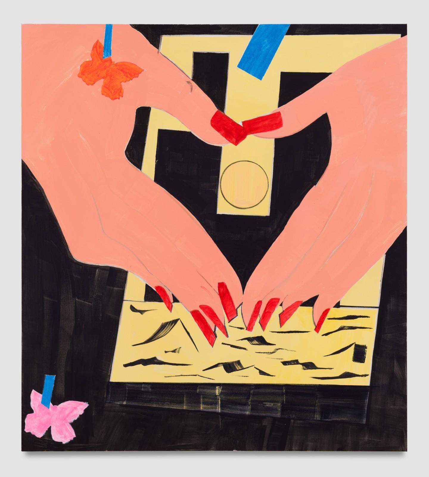 Spinning together elements from contemporary life and art history in order to arrive at something new, Grace Weaver makes whimsical figurative works that cleverly communicate psychological sensibilities through rubbery human forms. A 2015 Virginia Commonwealth University MFA grad, who hit the ground running and has been on the rise ever since, Weaver creates colorful canvases and lively charcoal drawings of self-conscious characters (mostly young women) caught in awkward—often comical—situations, in which they are totally aware of publicly being watched.