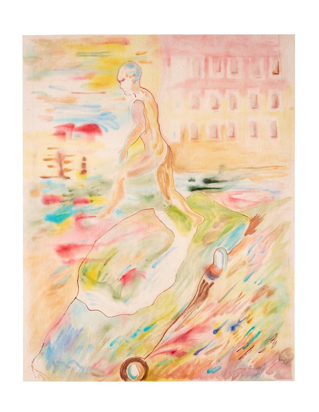 For decades, Van Sant has been frozen into film. But he has quietly been keeping up his practice, the evidence of which has been on exhibit in venus like Le Case d'Arte in Milan, the Musée de l'Elysée in Lausanne and the Jordan Schnitzer Museum of Art at the University of Oregon in Eugene, among others, as well as a show with James Franco at Gagosian in Beverly Hills in 2011. His new solo show, Recent Paintings, Hollywood Boulevard, is at Vito Schnabel Gallery in Greenwich Village through Nov. 1, a series of nine large-scale figurative watercolors on linen.