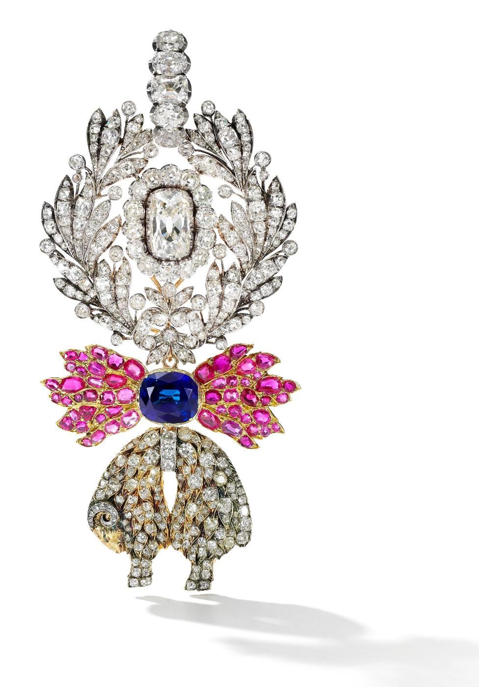 The highlight of the auction, a natural pearl and diamond pendant from Marie Antoinette’s personal collection, sold for $36,165,090, far above its pre-sale estimate of $1-2 million, establishing a new auction record for a natural pearl. The pendant was one of 10 exquisite pieces formerly owned by Queen Marie Antoinette, and in the care of the Bourbon Parma family for the last two hundred years. A beauty known for her love of culture, fashion and luxury, Marie Antoinette, with her tragic end, has an enduring fascination.