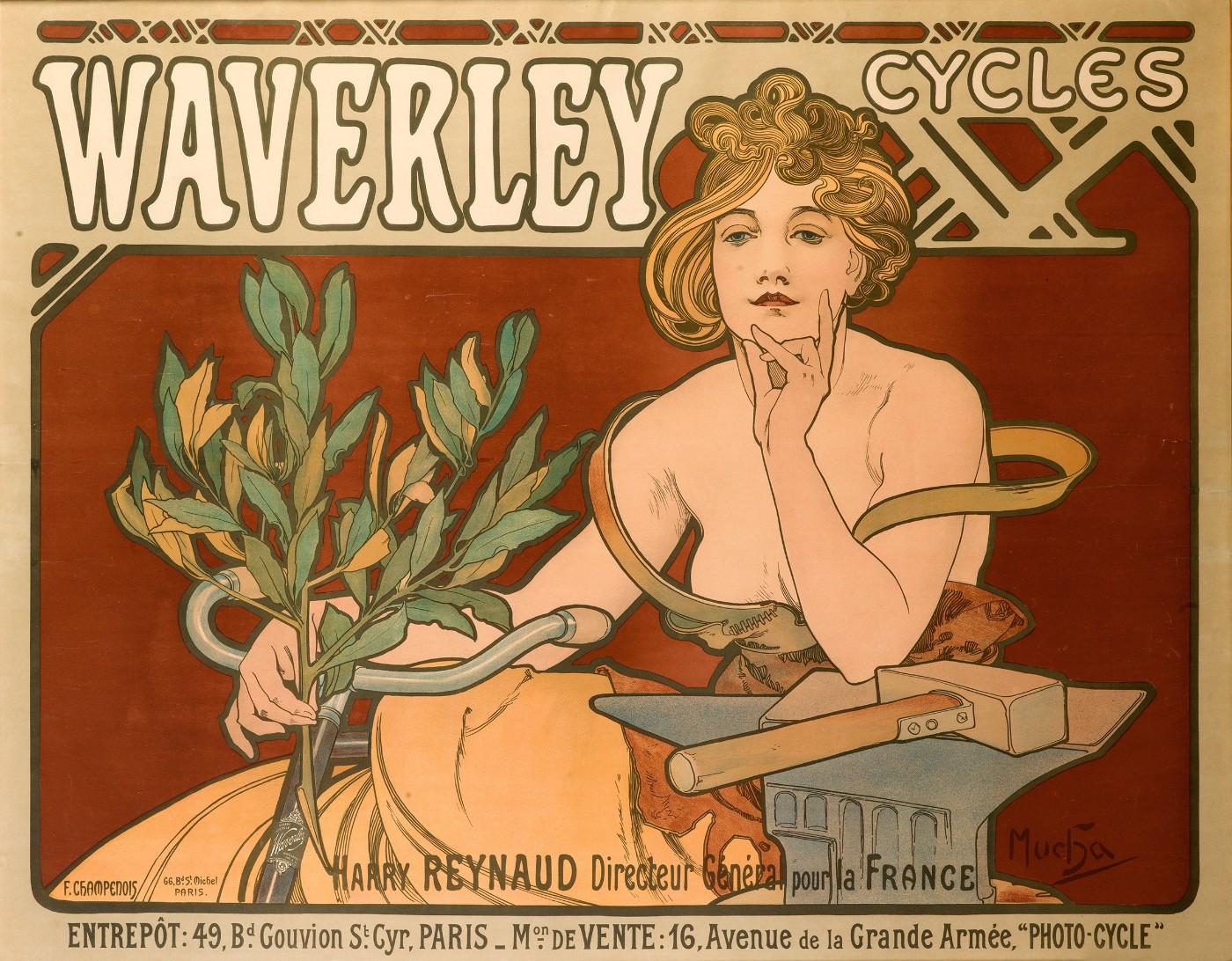 The inaugural exhibitions at the Poster House show just how far the art form has come. Alphonse Mucha: Art Nouveau / Nouvelle Femme showcases one of the most beloved artists of the poster genre. Mucha (1860 - 1939) rose to fame in France in the late 1890s, where his posters of the actress Sarah Bernhardt were hugely popular. Having previously worked as an illustrator, his images of Bernhardt brought him new clients in advertising, and soon he was creating sumptuous and flowing images for everything from rolling papers to wine and bicycles. His graphic Art Nouveau style captured the mood of the Belle Époque perfectly, and his captivating images remain popular as posters today.