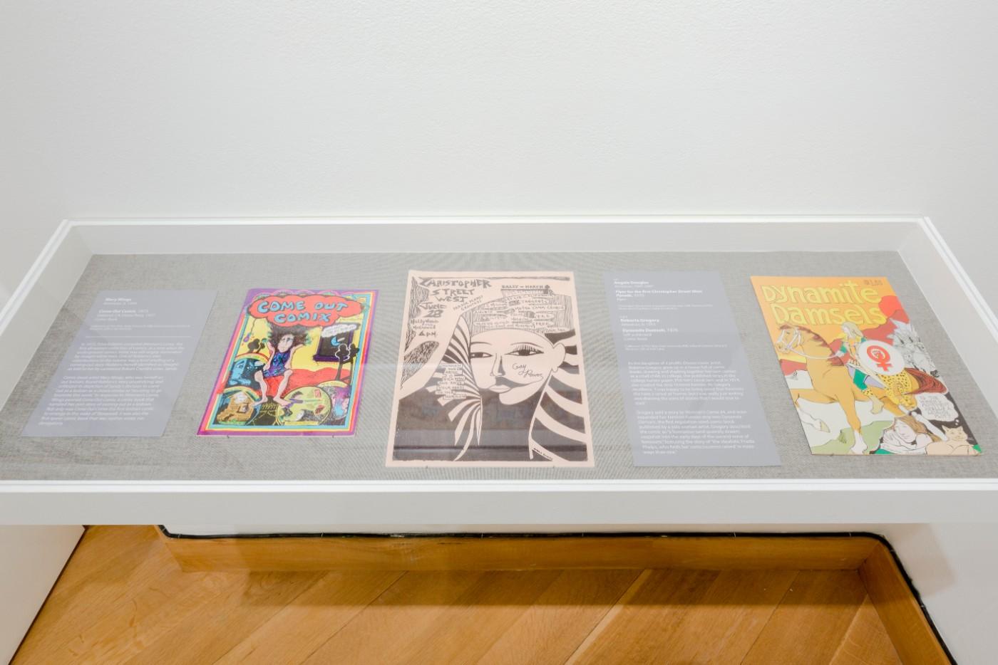 It’s hard not to be impressed by how fresh and engaging much of this work feels. So much of it was made not with concern for the art world’s establishment but with open antipathy for it. Pieces of the cultural story help ground the Grey show, and they exert real, accumulative power at Leslie-Lohman. There, modest offerings like Nancy Fried’s small, homely sculptures of flour, salt and acrylic, or Roberta Gregory’s Dynamite Damsels comic book, circa 1976, line up alongside an impressive list of contemporaneous publications like issues of On Our Backs and Azalea: A Magazine for Third-World Lesbians.  The exhibition also recasts Gordon Matta-Clark’s Day’s End: Pier 52 photos in their full context, acknowledging the space was a hotbed for cruising at the time, a fact the photographer found uncomfortable, at best. Add a delightful array of video installations, including Tricia’s Wedding by Sebastian and the Cockettes, and Barbara Hammer’s Dyketactics, running at their full lengths, and there’s enough on hand to reward repeat visits.