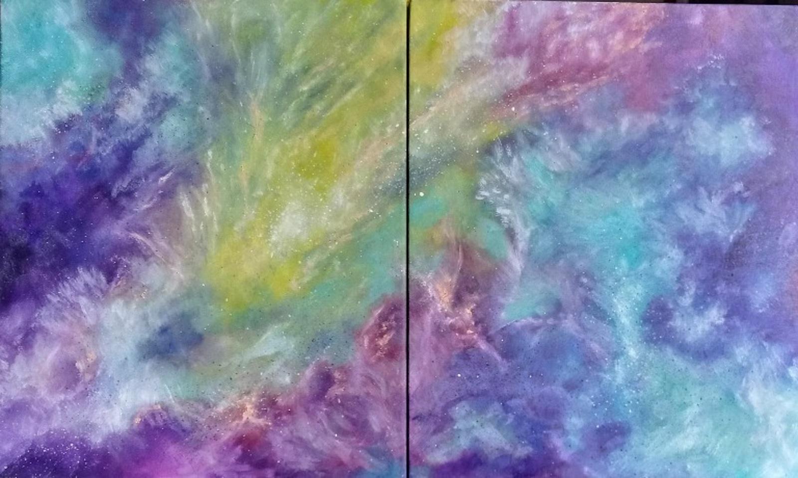 "Emotional Fluctuations, Color By Color" side by side canvas painting by Leire Markinez Calvo. 2021. License