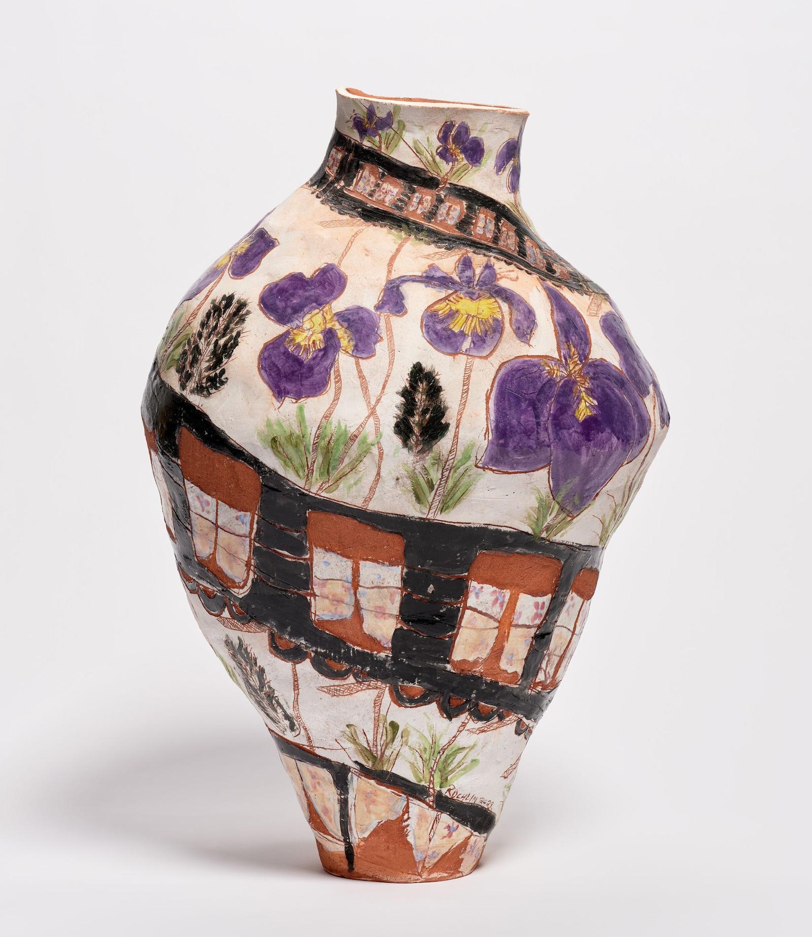 Eschewing flat, static canvases in favor of pottery— upon which time can roll— Rochlin memorializes and remembers her own life with pieces like Trans-Siberian Railway, Summer Snow, and Two Weeks in July. Her vessels glow with personalization, but equally dream and interact with viewers.