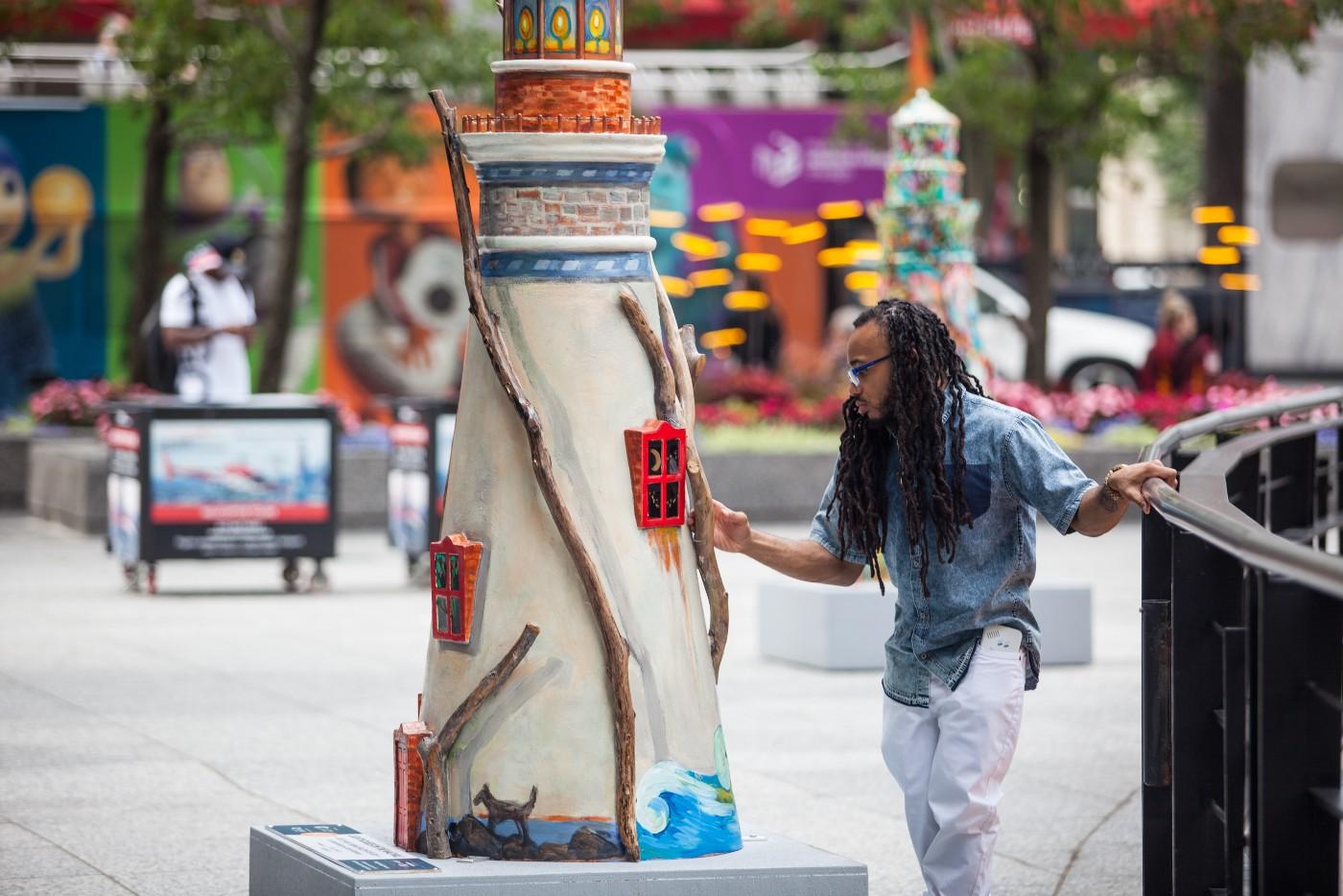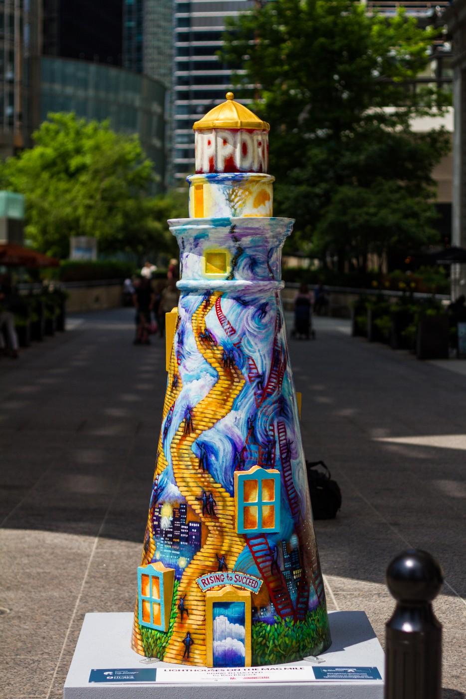 Lighthouses on the Mag Mile is on display through August 11. After their display, the works of art will be sold at auction.