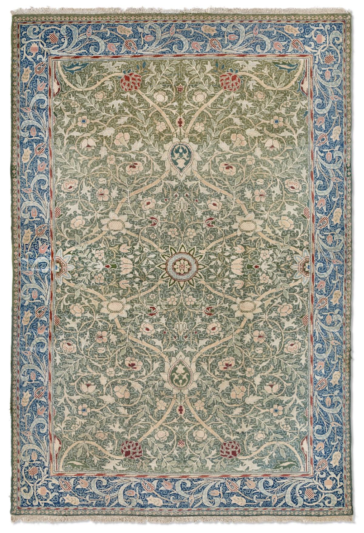 There are quite a few rugs up for auction by William Morris, one of the most significant members of the movement. His hand-knotted Hammersmith rug carries an estimate of $70,000 to $100,000.