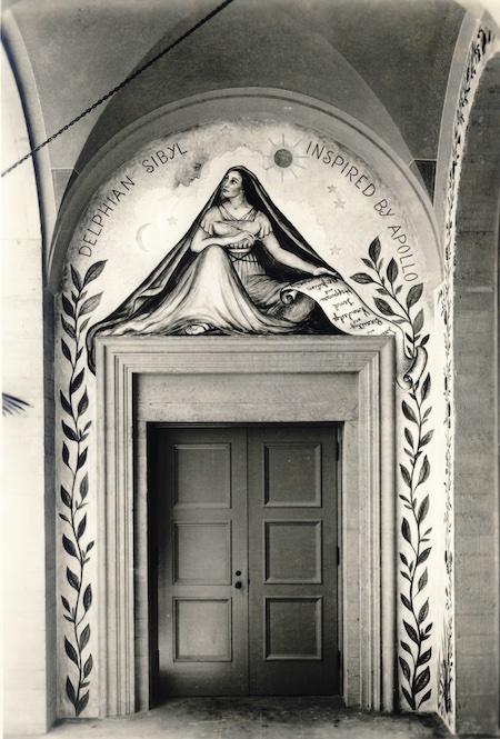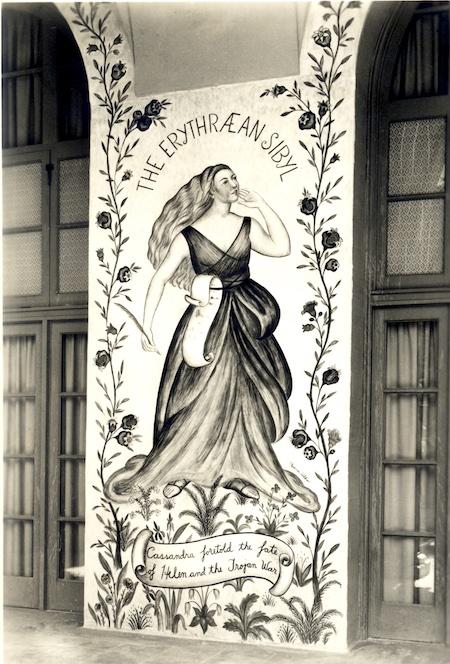 Each of these Ebell artworks depicted a Roman, Cumaean, Erythraean, and Delphic sibyl—"The Four Sibyls”—gowned in long robes and dresses, encircled by flowers, with a scroll close by. The frescoes were bold in color and quite modern for the times.