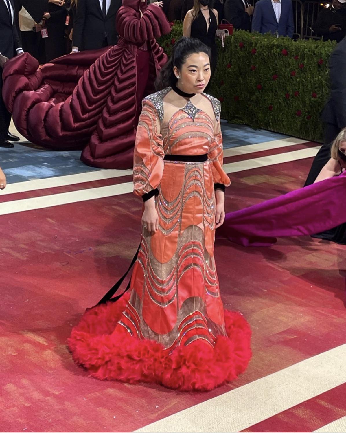 It should be acknowledged that a good deal of designs from the night did, at least, seem inspired by the correct time period, approximately 1870 to 1900. Billie Eilish, who brought her own modern goth twist to a traditional evening gown, was a particular fan favorite.