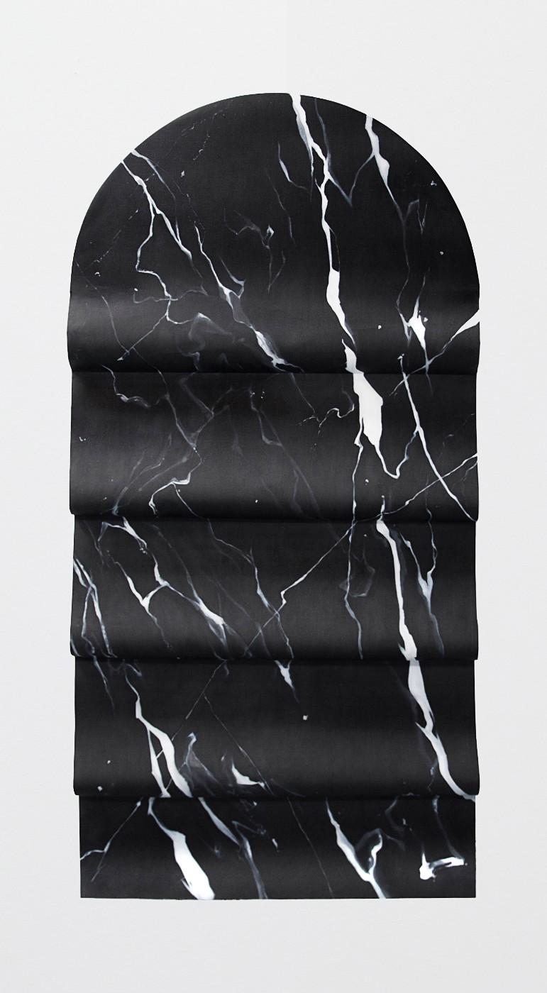 Horibuchi is interested in that cognitive switch we make in deciding what to see. Her meticulously detailed oil paintings of linen curtains and slatted window screens, incongruous in their wooden frames, offer apparent windows into another space, yet are impossible to open, no matter how tactile and three dimensional they appear.