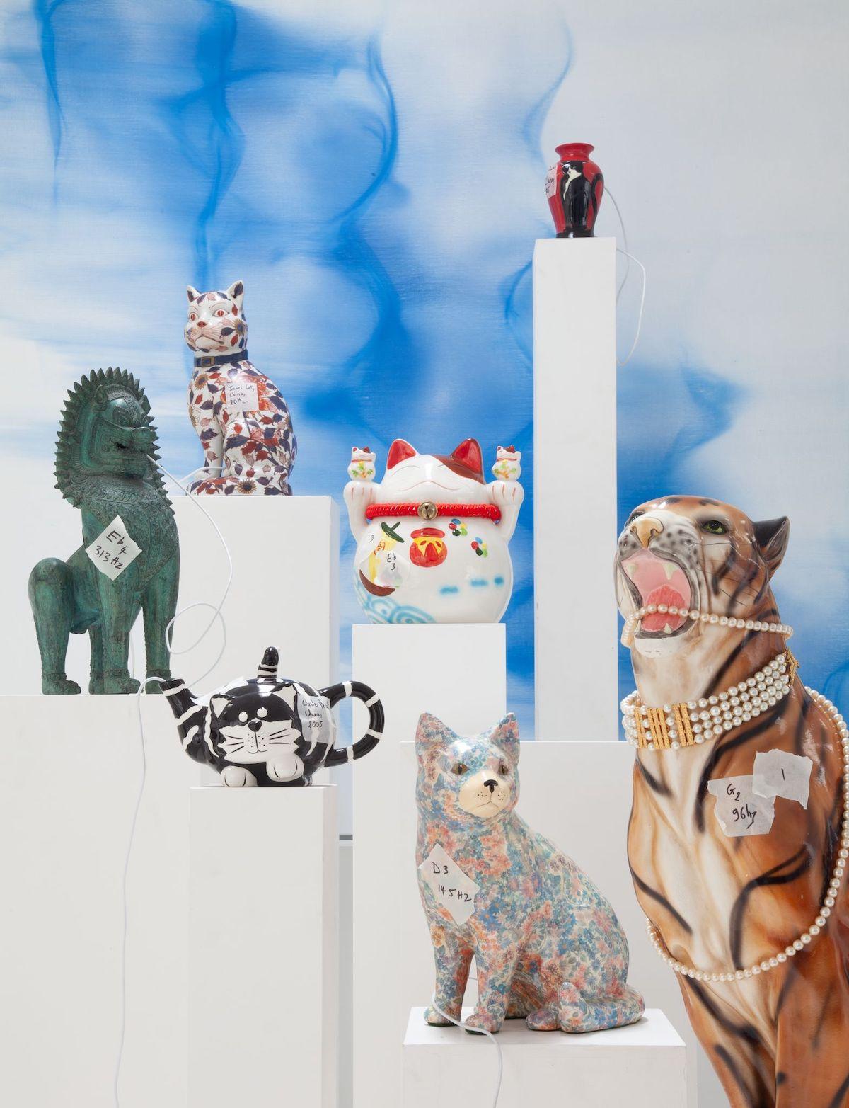Beer sorted through thousands of cat vessels from all over the world to find thirty-seven “that sing in tune with each other.” He enjoys the fact that “because of the universal nature of the relationship of music and form, harmony and form, none of those objects can avoid singing.” Beer finds the sound they make magical. “The resonance of these things is so surprising and yet so evident when we hear it, so self-evident.”
